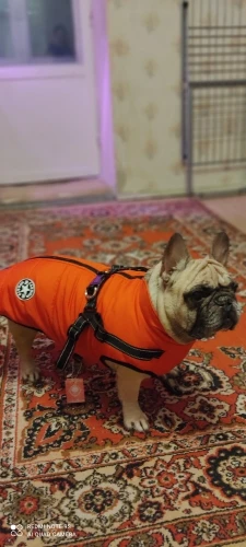 Подошла минибулю в самый раз размер XXL, качество отличное, доставили за 2 недели в Тверь..