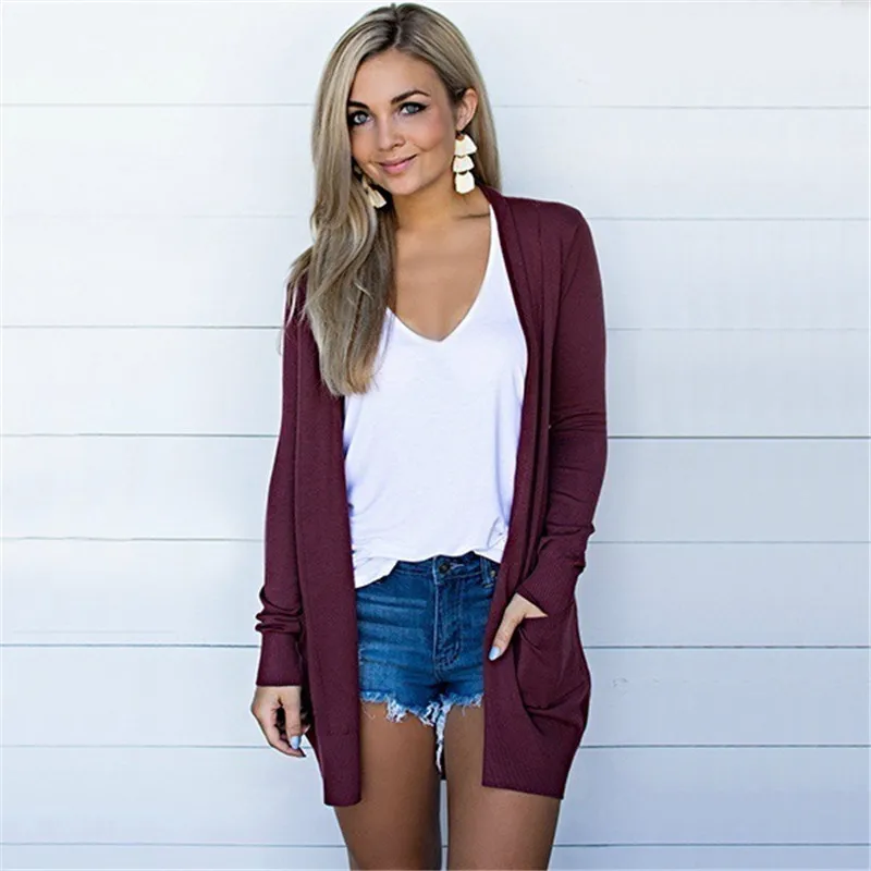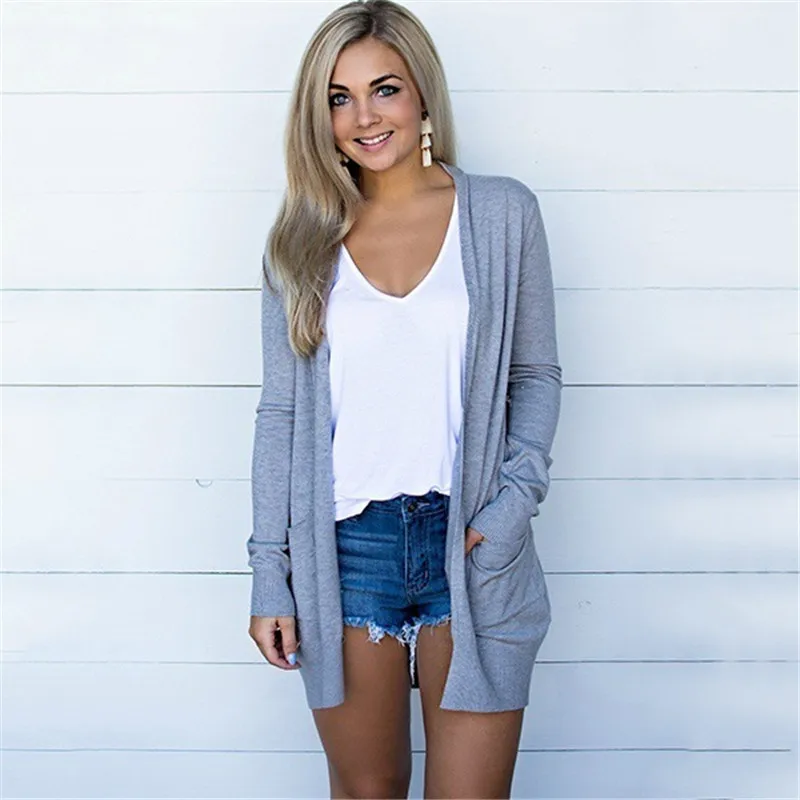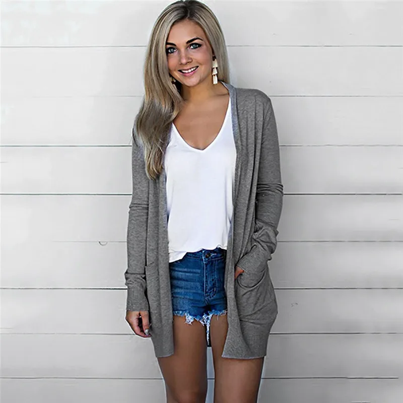 Трикотажные кардиганы для женщин 2021 большой размер однотонный v-образный вырез размера плюс размер Повседневный черный кардиган с длинным рукавом пальто с карманами верхняя одежда