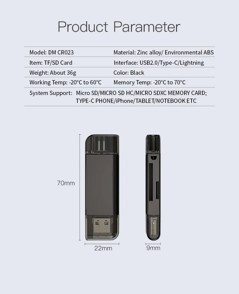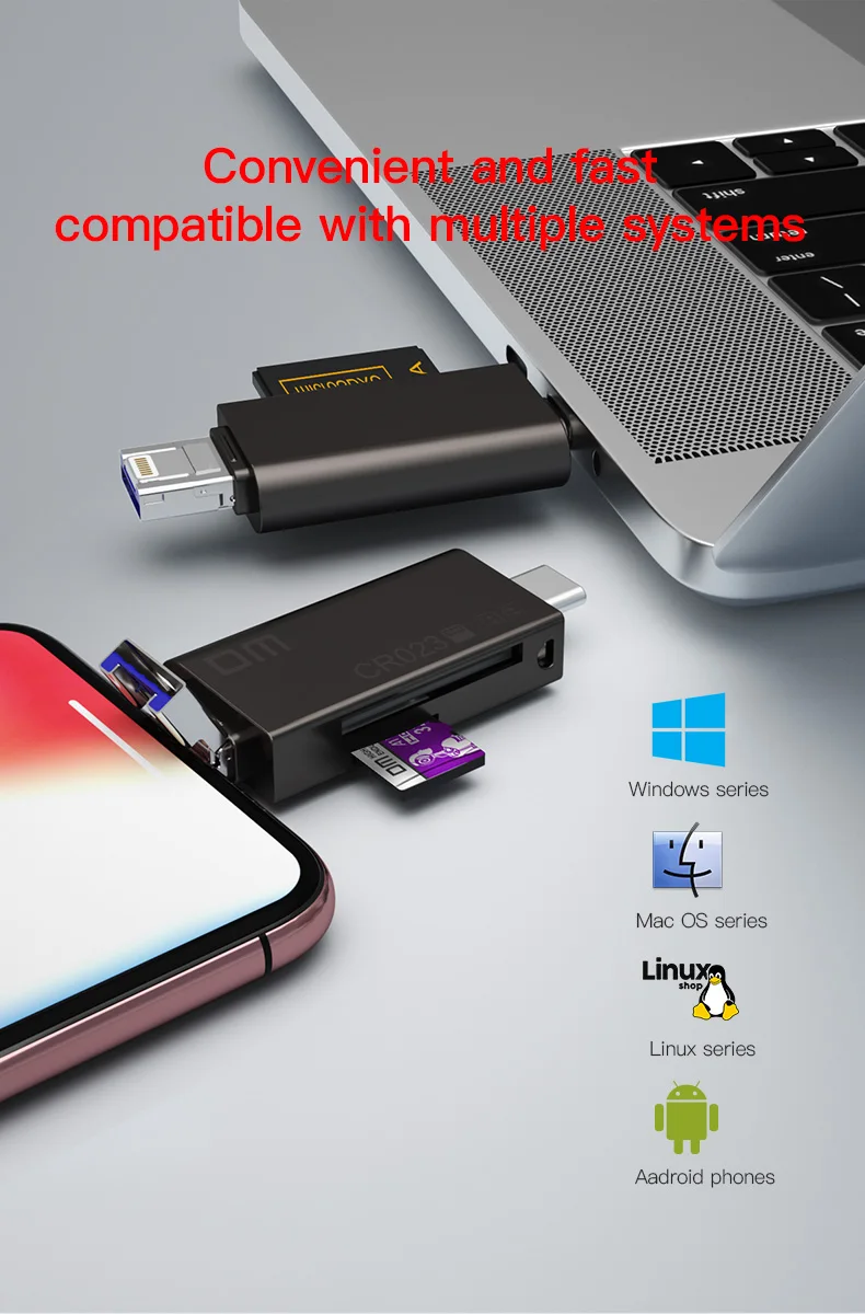 DM 5 в 1 кардридер CR023 SDTF Muldti кардридер с USB lightning и микро usb интерфейсом