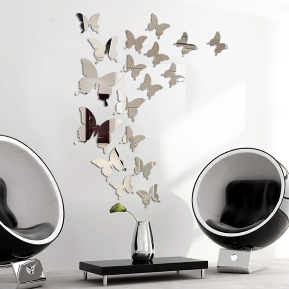 3D зеркальные наклейки на стену с бабочкой, 12 шт., наклейки на сте...