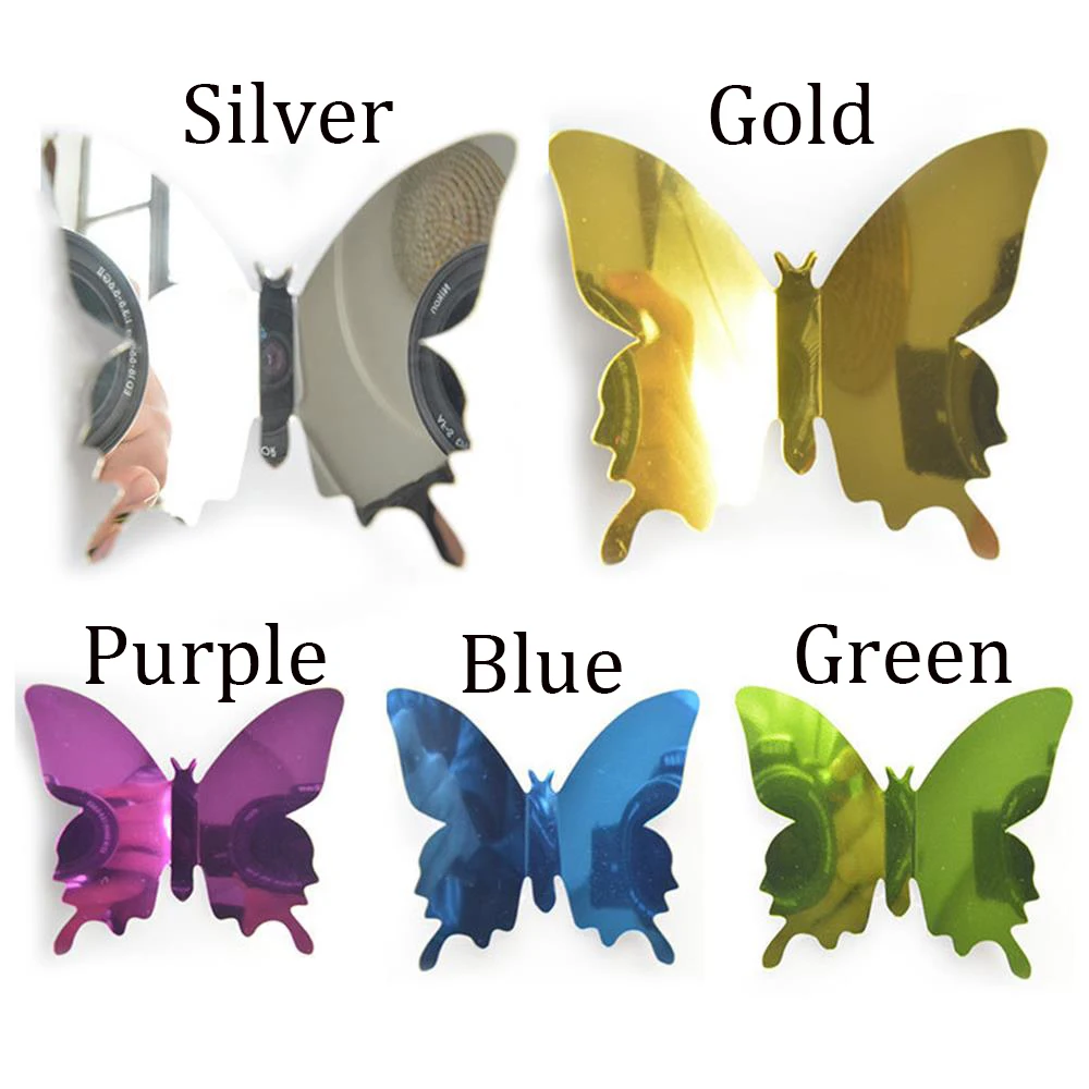 12 шт.лот 3D бабочка Зеркальная Наклейка на стену для вечеринки сва...