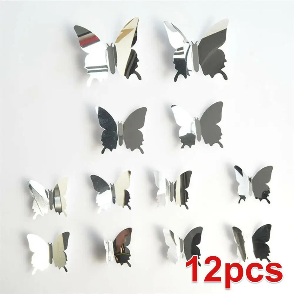 12 шт.лот 3D бабочка Зеркальная Наклейка на стену искусство съемное...