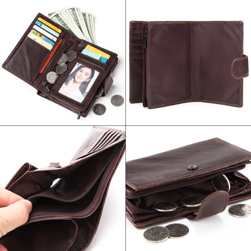 Кошелек мужской для паспорта и кредитных карт, многофункциональный бумажник из натуральной воловьей кожи, вместительный саквояж для мелочи и путешествий