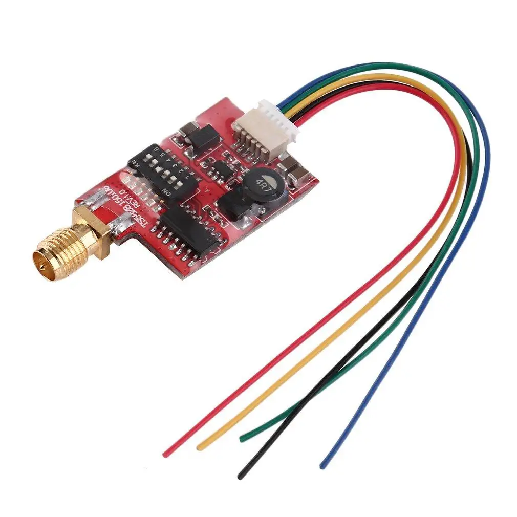 TS5828 Описание: Наименование товара: передатчик FPV Канал: 48CH Частота: 5,6G-5,9G • Сила тока: 190mA/12V Температура:-10-85 градусов Пропускная способность видео: 8 м Ширина полосы звуковых частот: 6,5 м Антенна: RP-SMA Размеры: 38x18x8mm Вес: 16 г