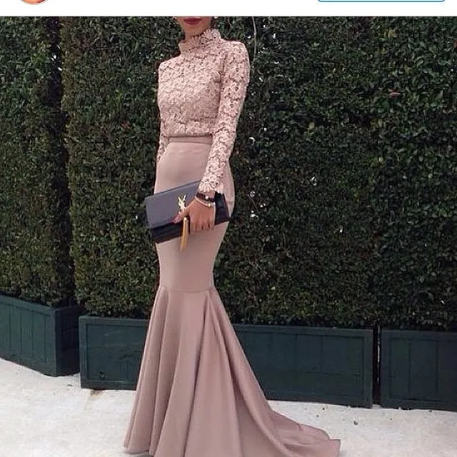 Мусульманские красные вечерние платья с высоким воротником и длинным рукавом...
