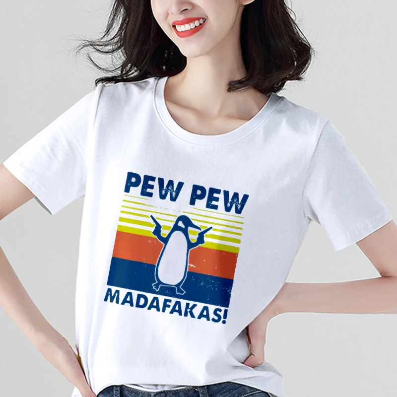 Женская футболка с принтом пингвина Kpop с пистолетом Pew Madafakas, Повседневная футболка с принтом, 90s, Harajuku