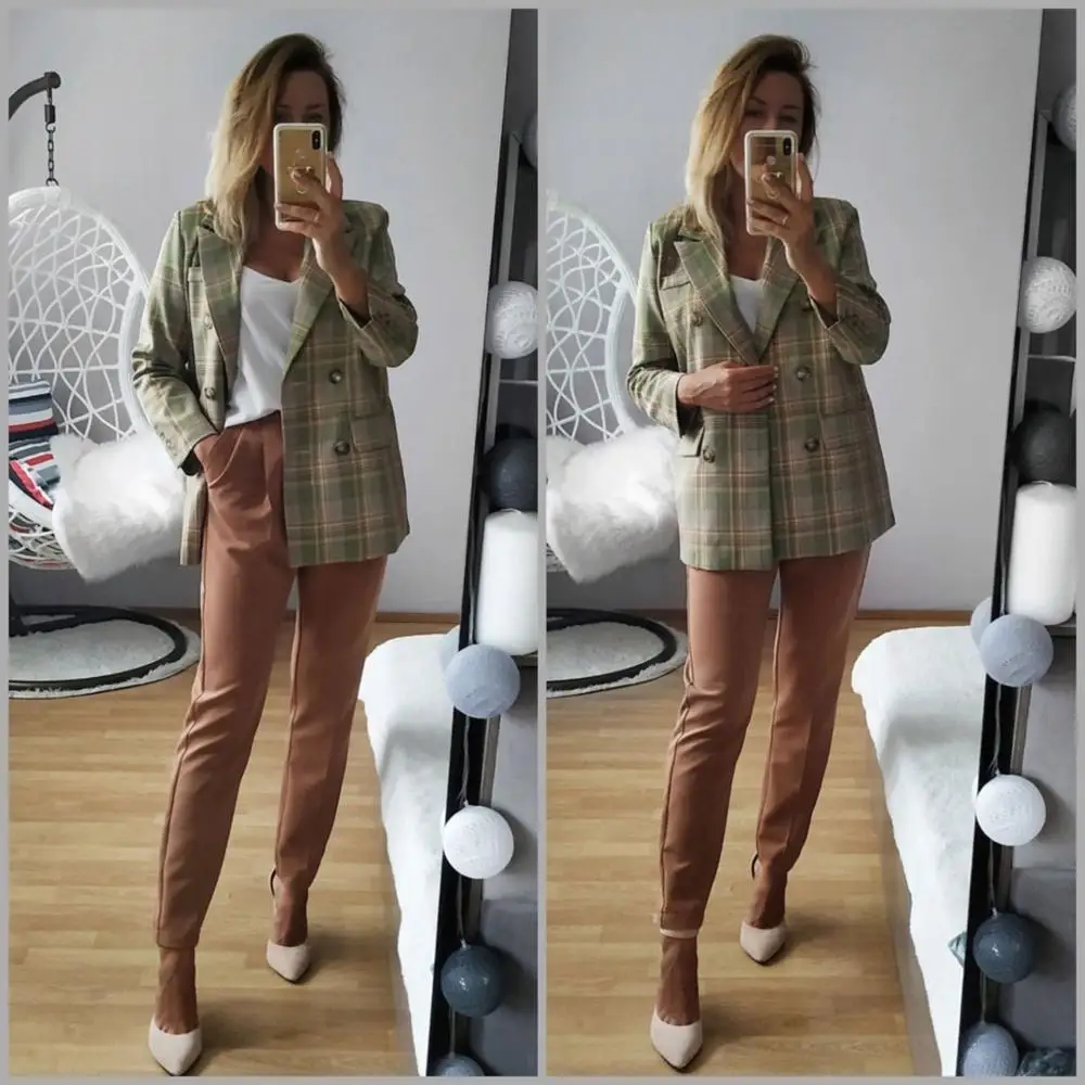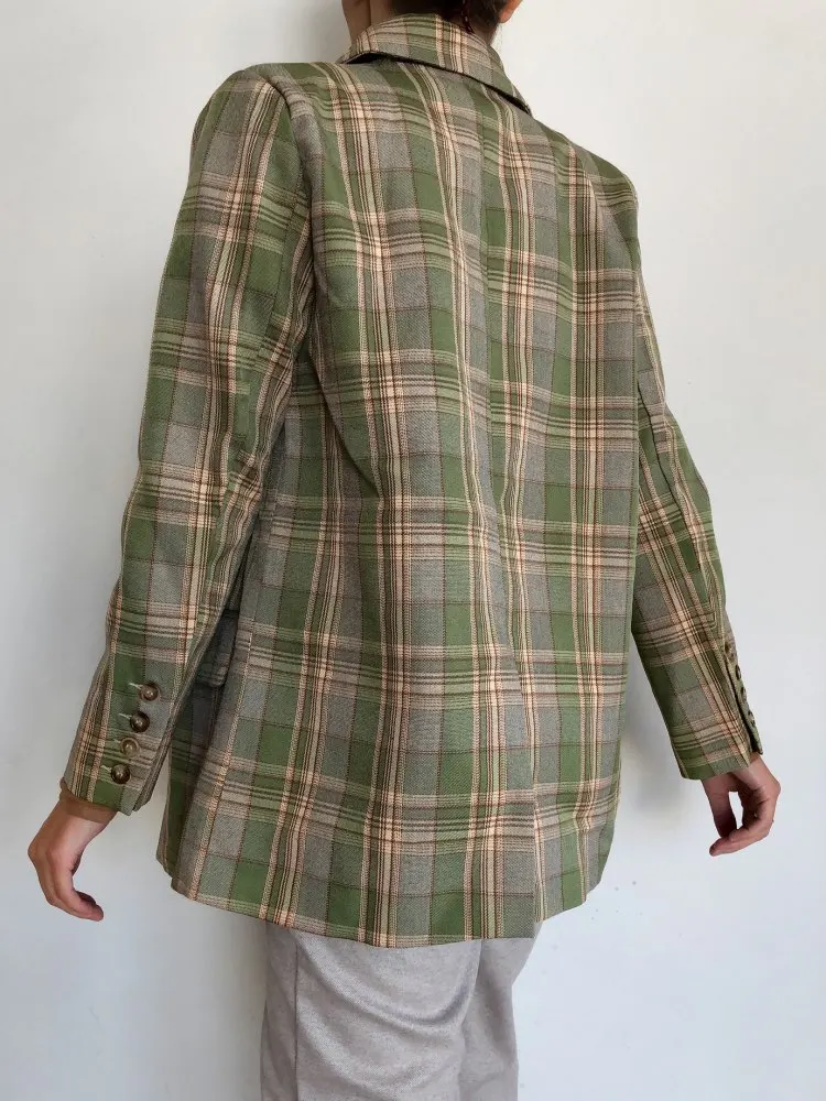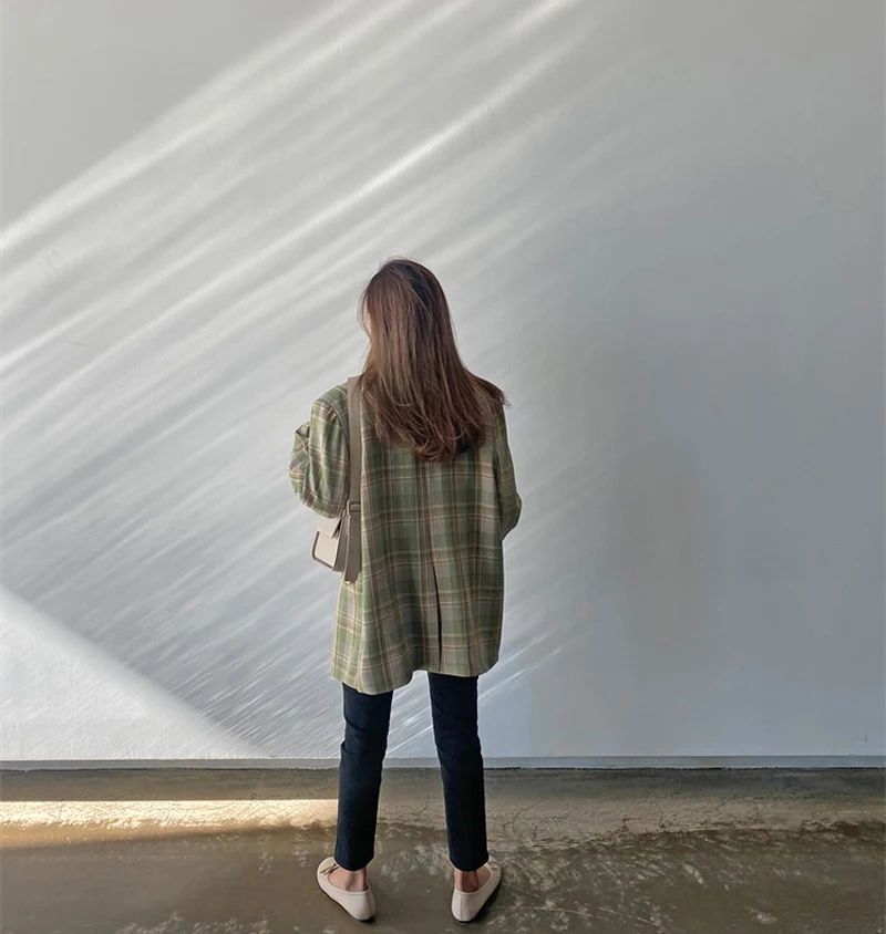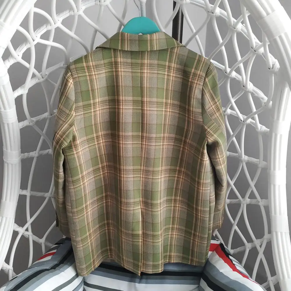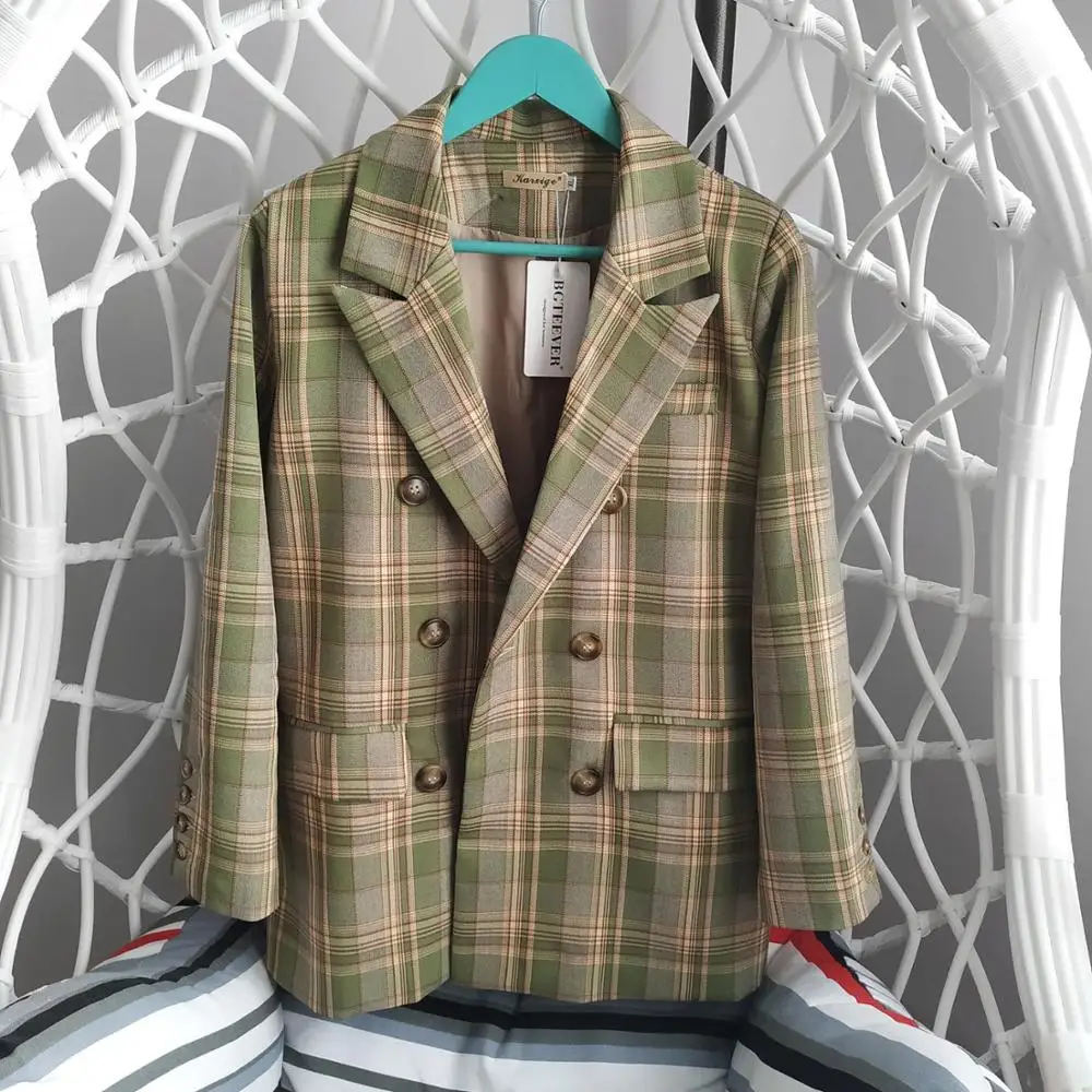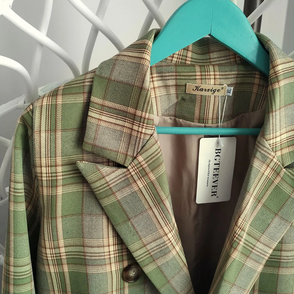 Женский блейзер BGTEEVER, винтажный свободный двубортный пиджак в клетку, длинный, для осени