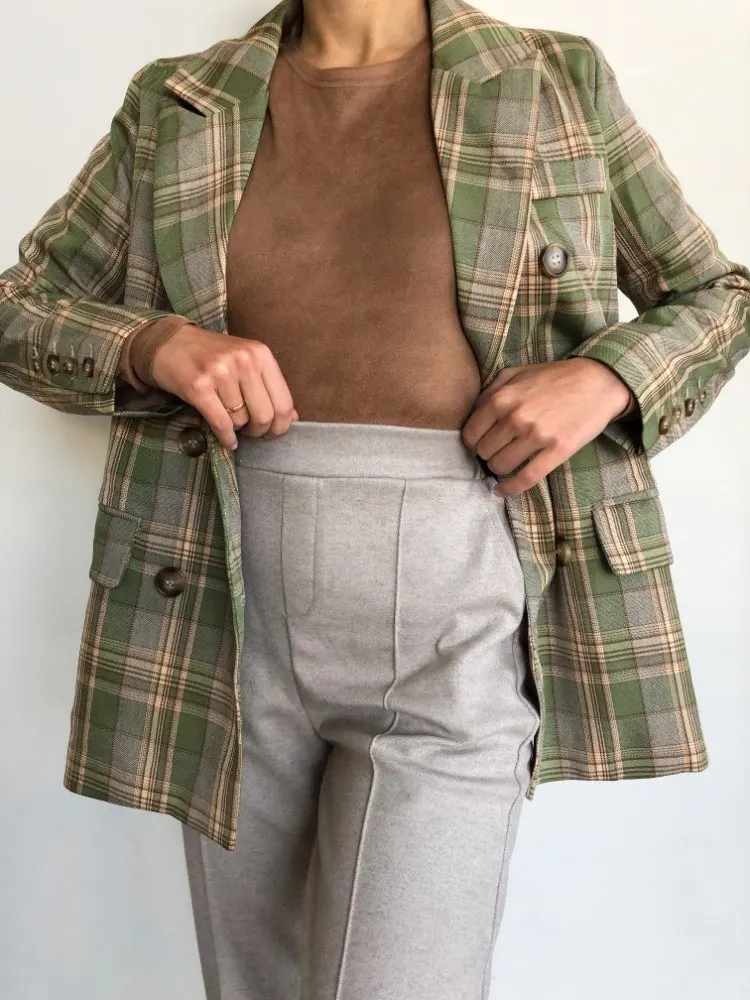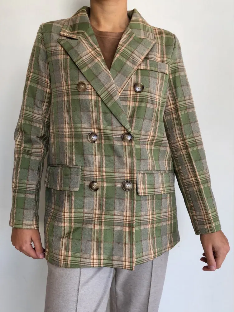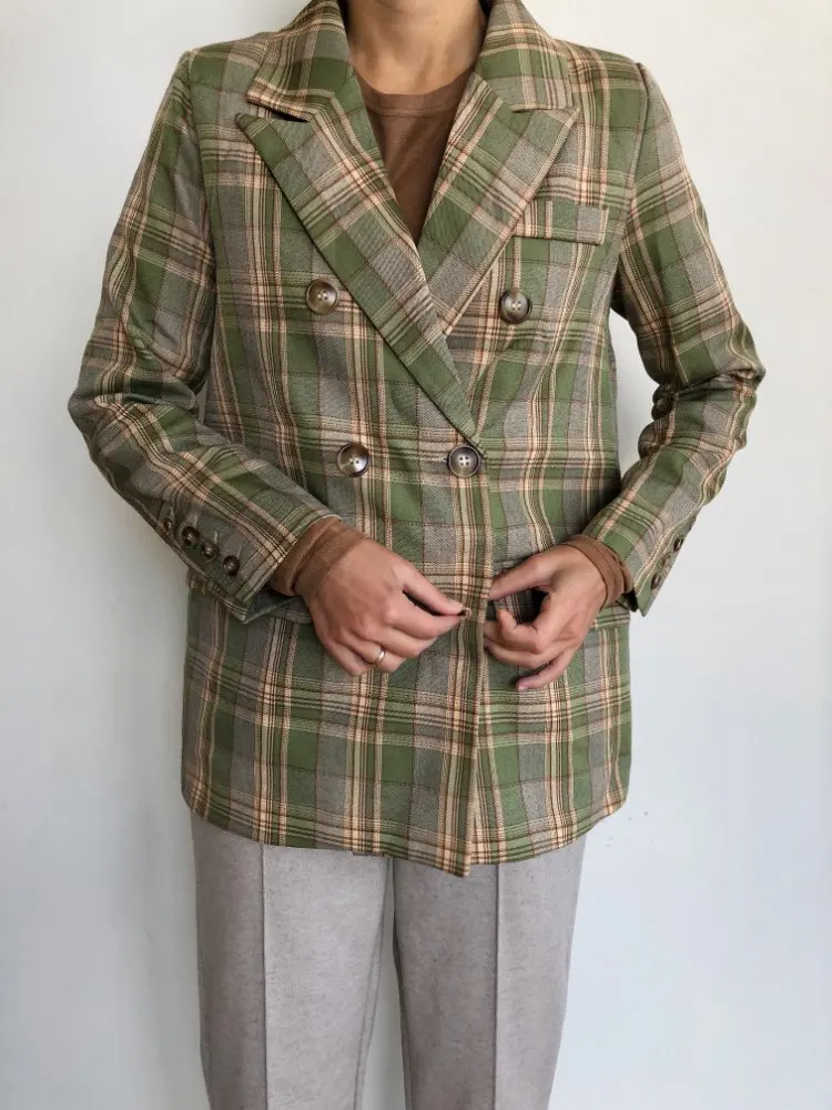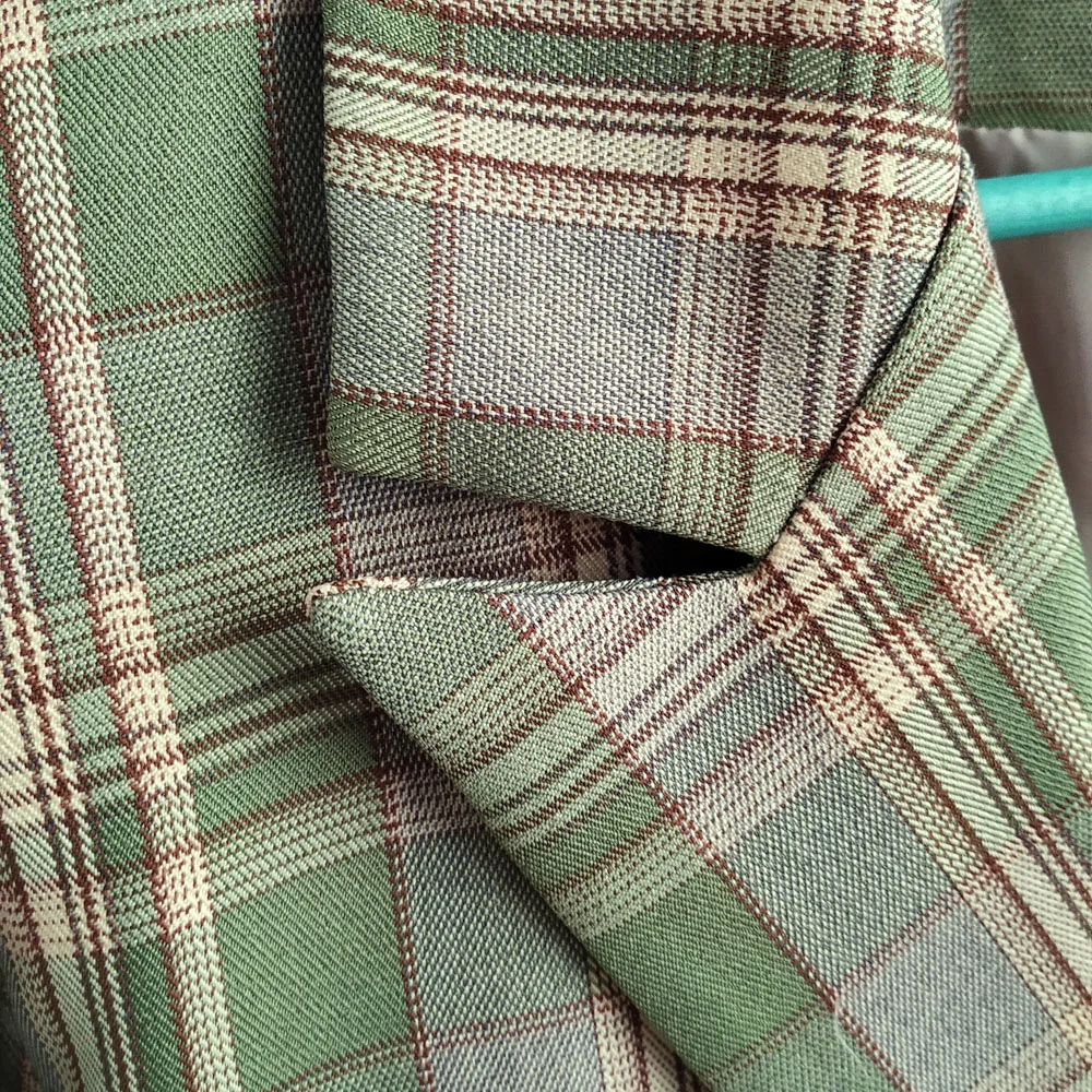 Очень приятный блейзер. Ткань у него добротная, плотная и качественная, прям понравилась, и в ней не только зелень, но и коричневые и бежевые полоски. Клетка сложная. На параметры 98-77-100 рост 170 выбрала XL, блейзер сел отлично. Рукав чуть укороченный Модель двубортная, стильная Хорошо смотрится даже в застёгнутом виде Блейзер держит форму, садится отлично Но имейте в виду что клетка не стык*уется Мне вещь понравилась, и фасоном и приятной спокойной цветовой гаммой