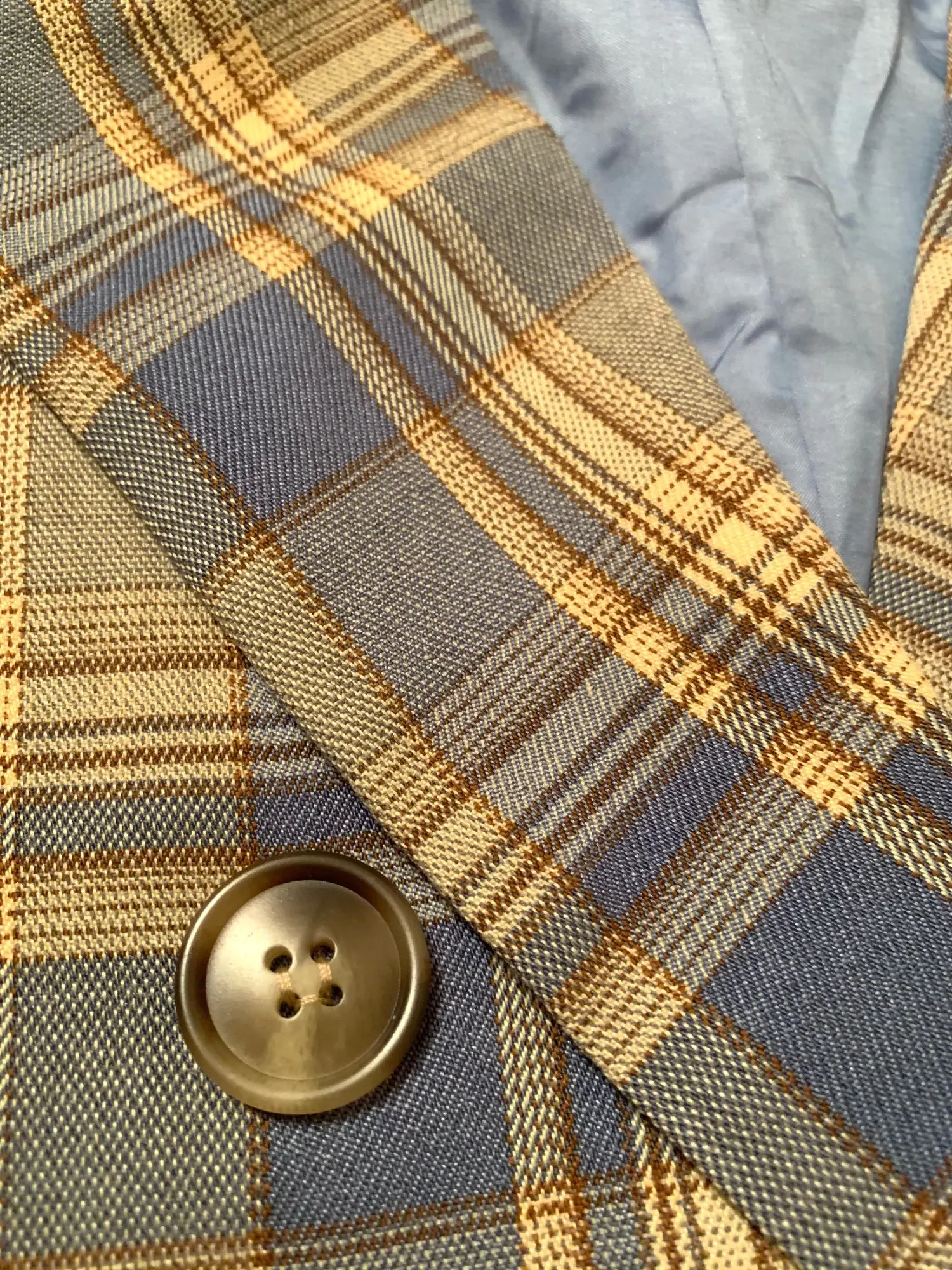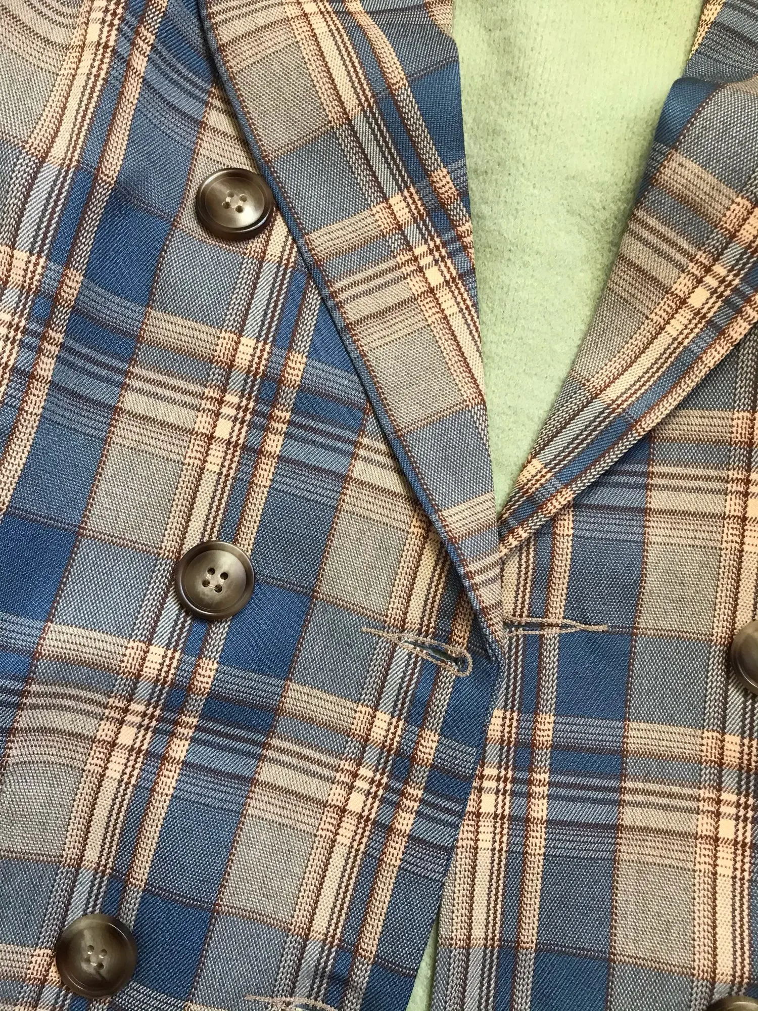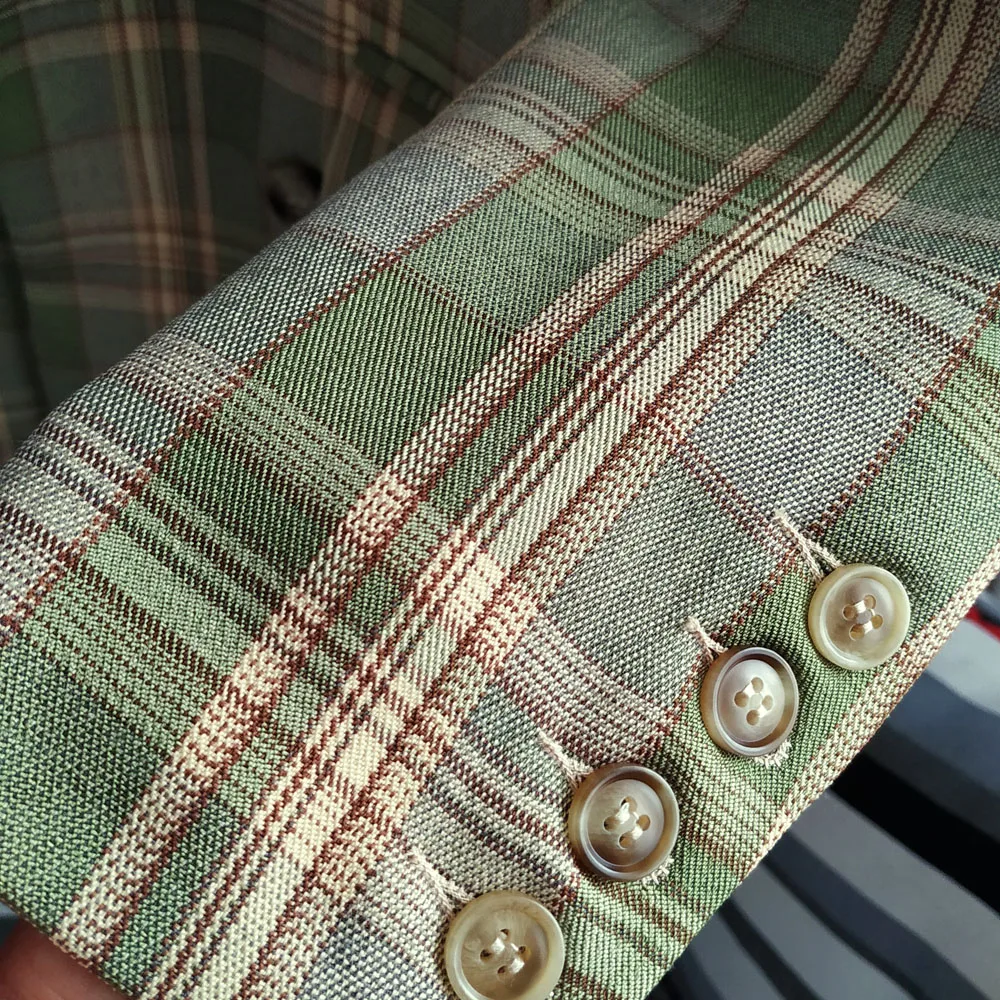 Очень приятный блейзер. Ткань у него добротная, плотная и качественная, прям понравилась, и в ней не только зелень, но и коричневые и бежевые полоски. Клетка сложная. На параметры 98-77-100 рост 170 выбрала XL, блейзер сел отлично. Рукав чуть укороченный Модель двубортная, стильная Хорошо смотрится даже в застёгнутом виде Блейзер держит форму, садится отлично Но имейте в виду что клетка не стык*уется Мне вещь понравилась, и фасоном и приятной спокойной цветовой гаммой