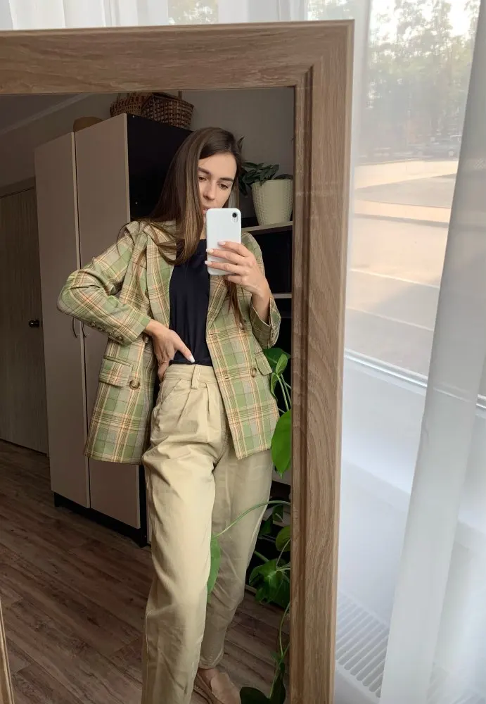 Отличный пиджак, красивый, не мнётся. Только пожалела что не взяла немного поменьше, но благо оверсайз ещё в моде)