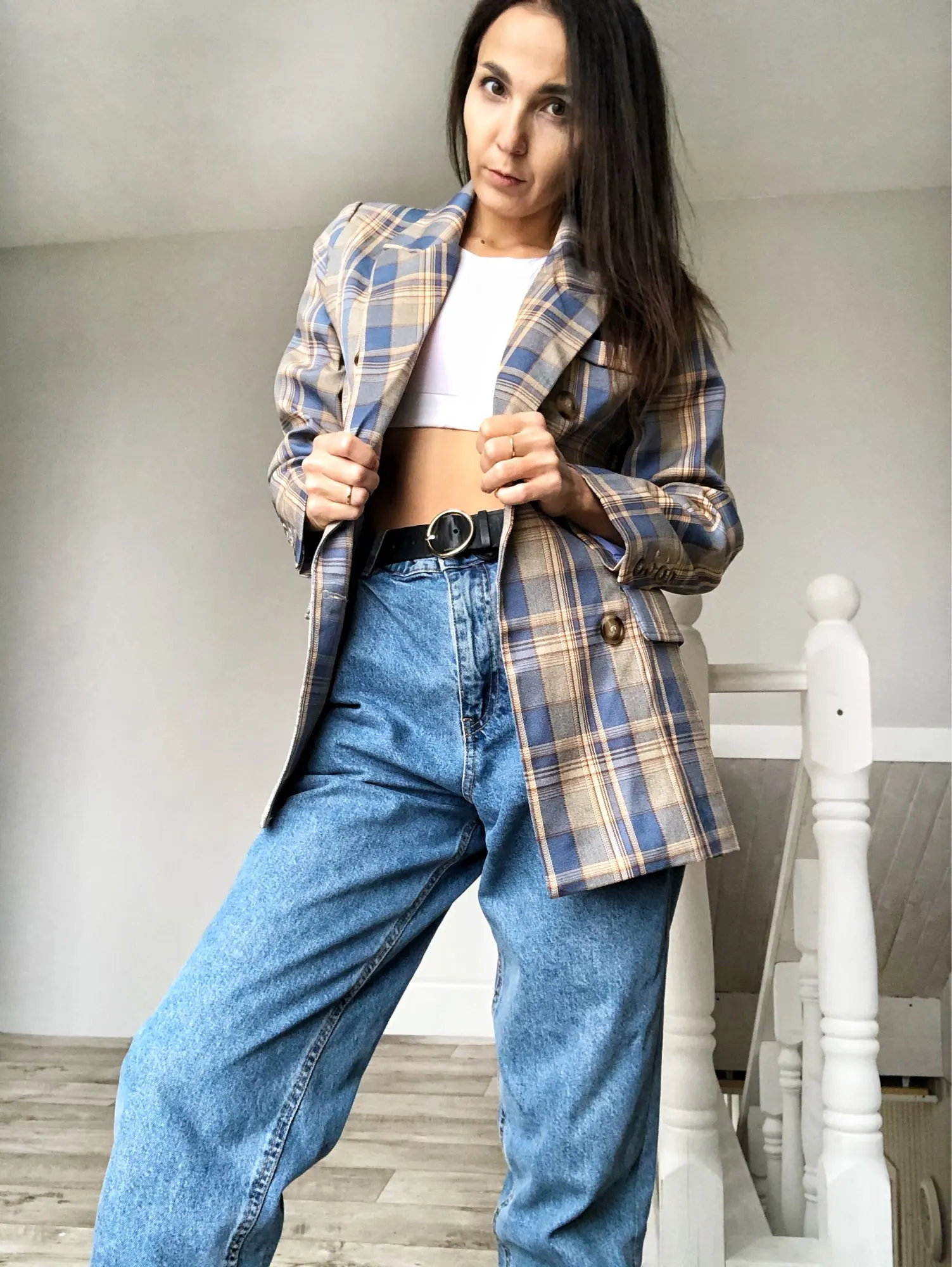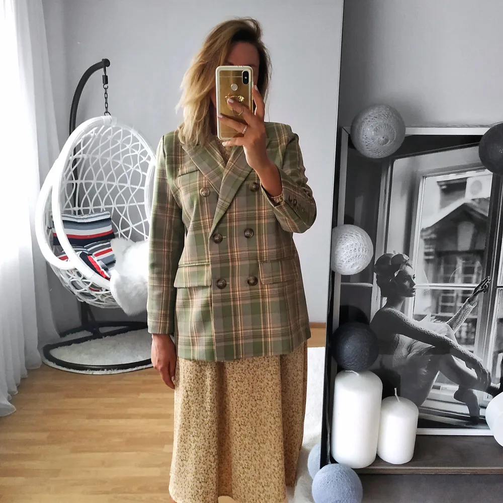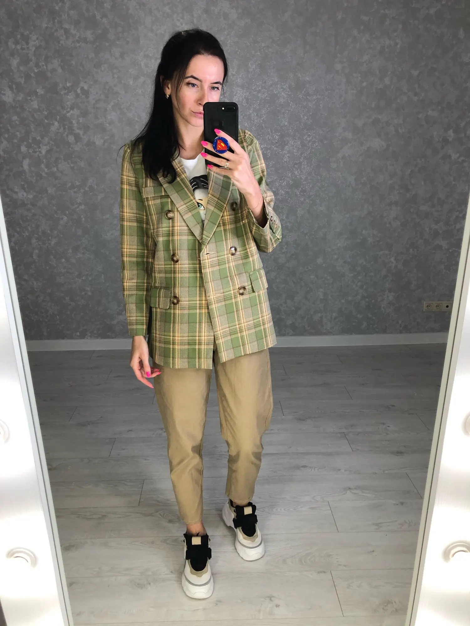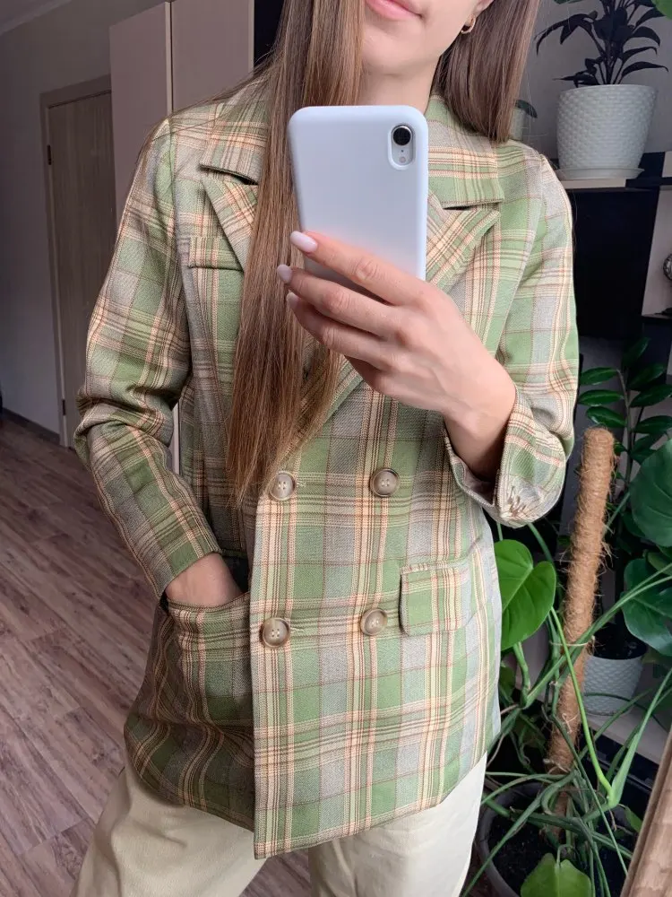 Классный и стильный клетчатый жакет Жакет заказала в размере L, на мои параметры 86-66-95 сел отлично. К пошиву не придерёшься, все очень аккуратно: подклад, петли, шлица, карманы с клапанами. Рисунок клетки на спинке совпадает по шву. К покупке рекомендую Больше отзывов в моем инстаграм @landyshka_vasikova