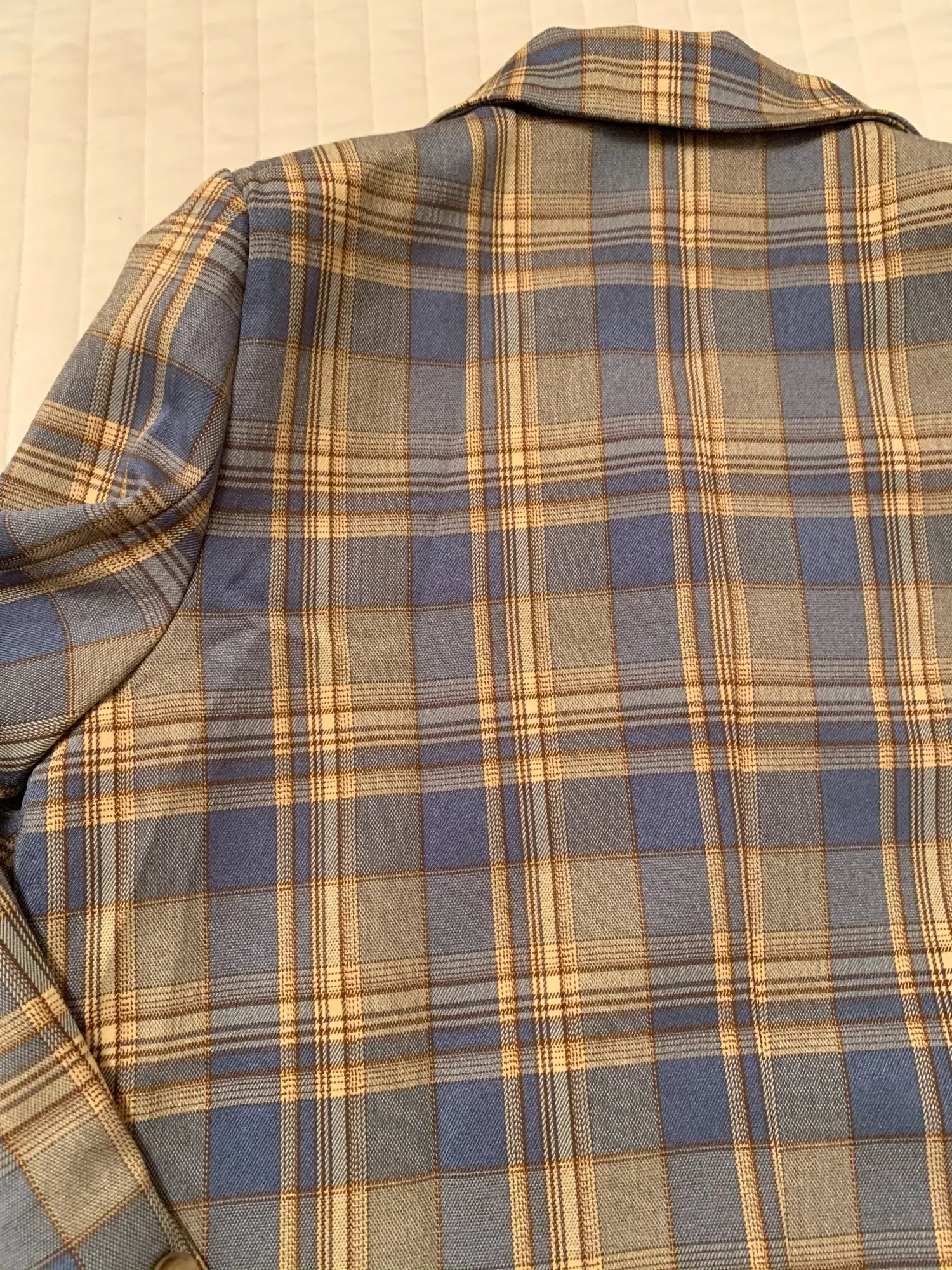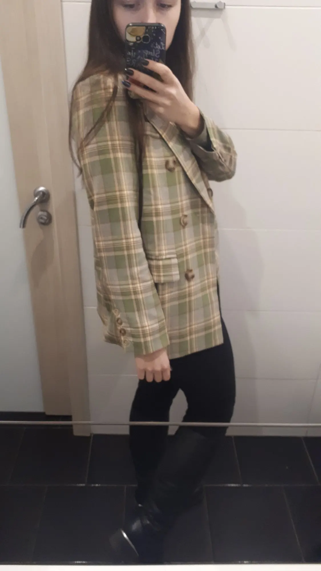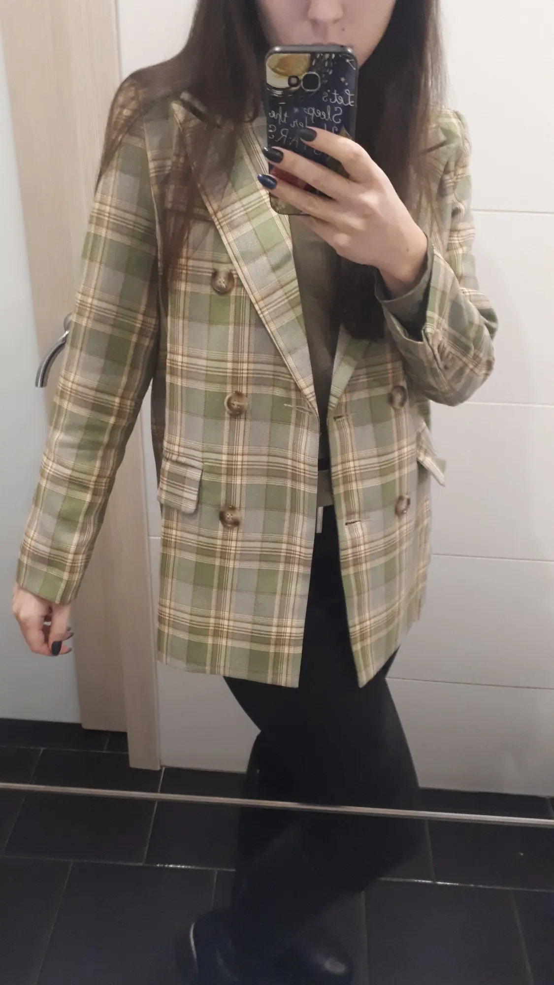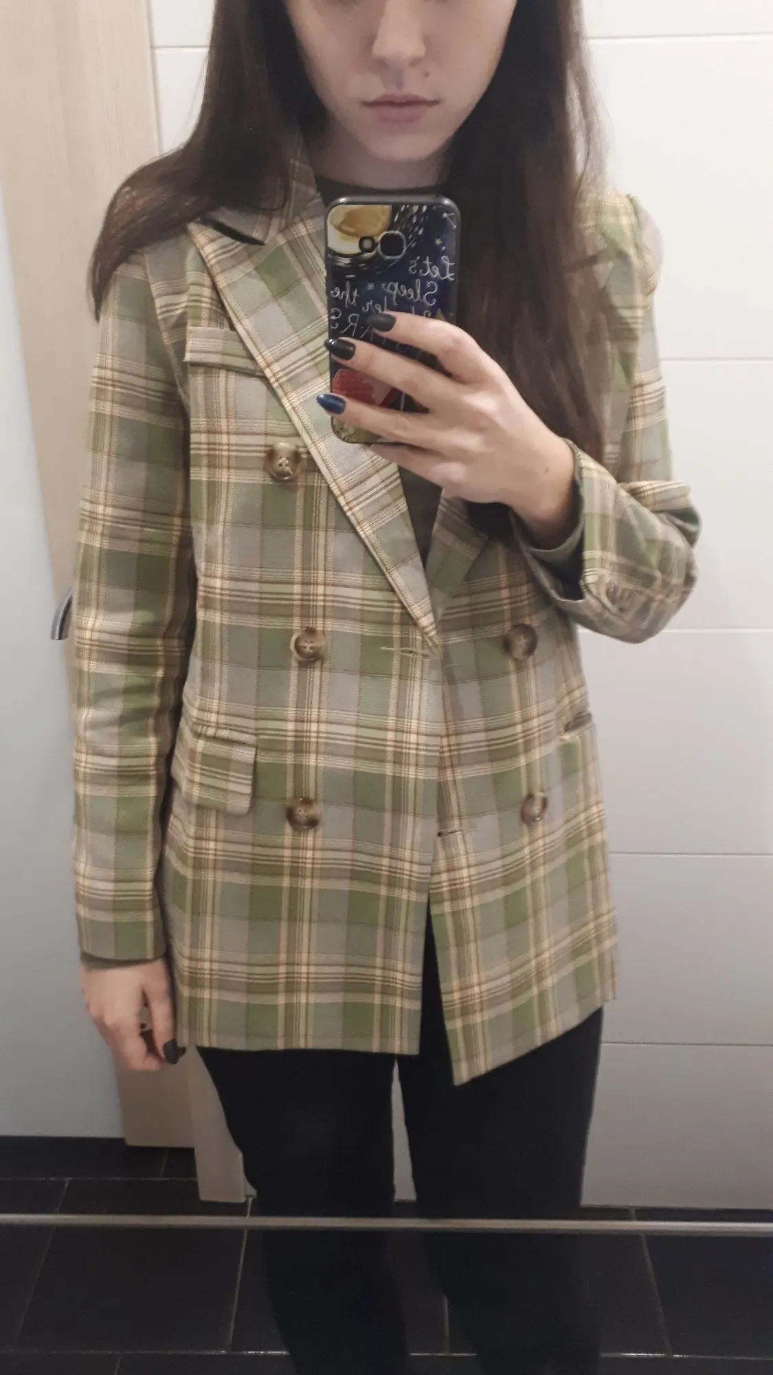 Отличный жакет! Ткань плотная, цвет насыщенный, клетка к клетке! Сидит Хорошо, размер взяла свой S, слегка оверсайз, но так и надо! Плечи на месте, есть подплечник! Заказ шёл 12 дней и это очень быстро, покупала со распродаже 11.01