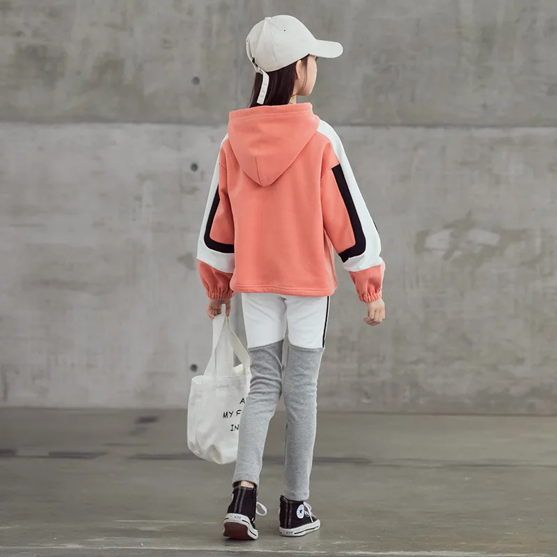 Новинка осени 2022, детская одежда, свитшот с капюшоном для девочек, хлопковый свитшот в стиле пэчворк для девочек-подростков, Модный повседневный свитшот, #9117