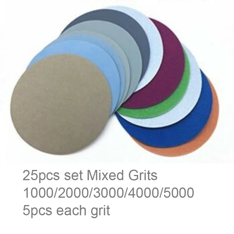 Наждачная бумага-25 шт., шлифовальный диск с петлей-липучками, 3 дюйма, зернистость 1000, 2000, 3000, 4000, 5000, для полировального круга, инструменты для чистки