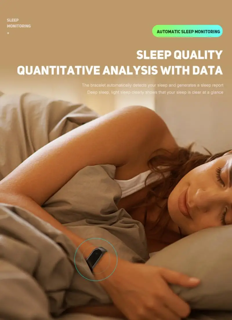 Мониторинг сердечного ритма и сна: отслеживает частоту сердечных сокращений в реальном времени автоматически и непрерывно и автоматически отслеживает продолжительность вашего сна и его соответствие с комплексным анализом данных о качестве сна, помогая вам настроить себя для более здорового образа жизни