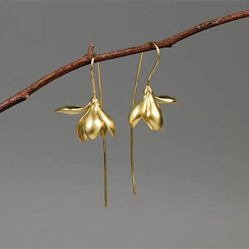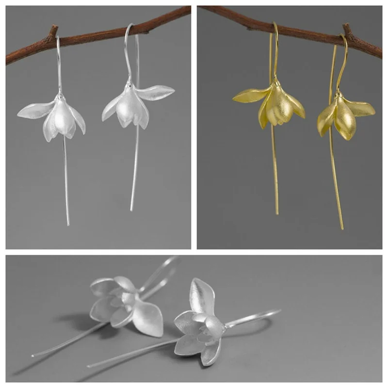 Серьги-подвески в форме цветка магнолии женские, элегантные ювелирные украшения золотого и серебряного цвета, хороший подарок для женщин