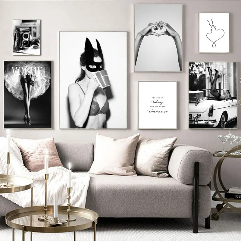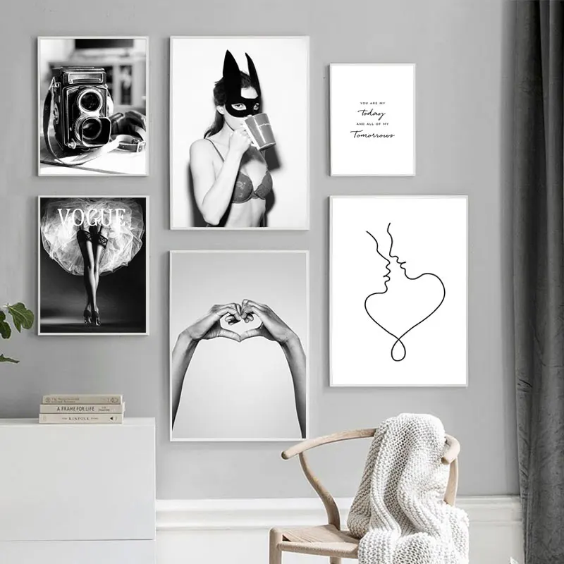 Черно-белые постеры и принты, модная девушка, настенная художественная галерея, декоративная картина для гостиной, холст, искусство, домашний декор, постер