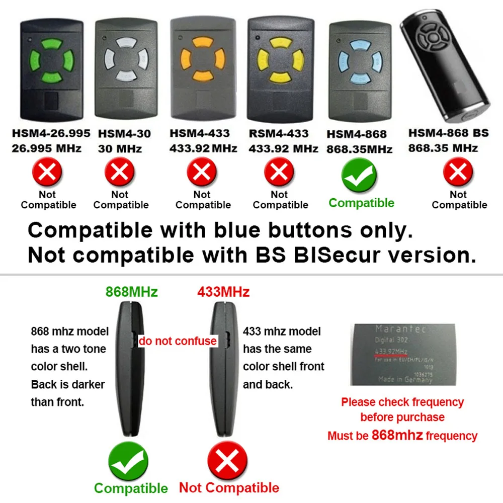 Совместим только с синей кнопкой Hormann 868MHz