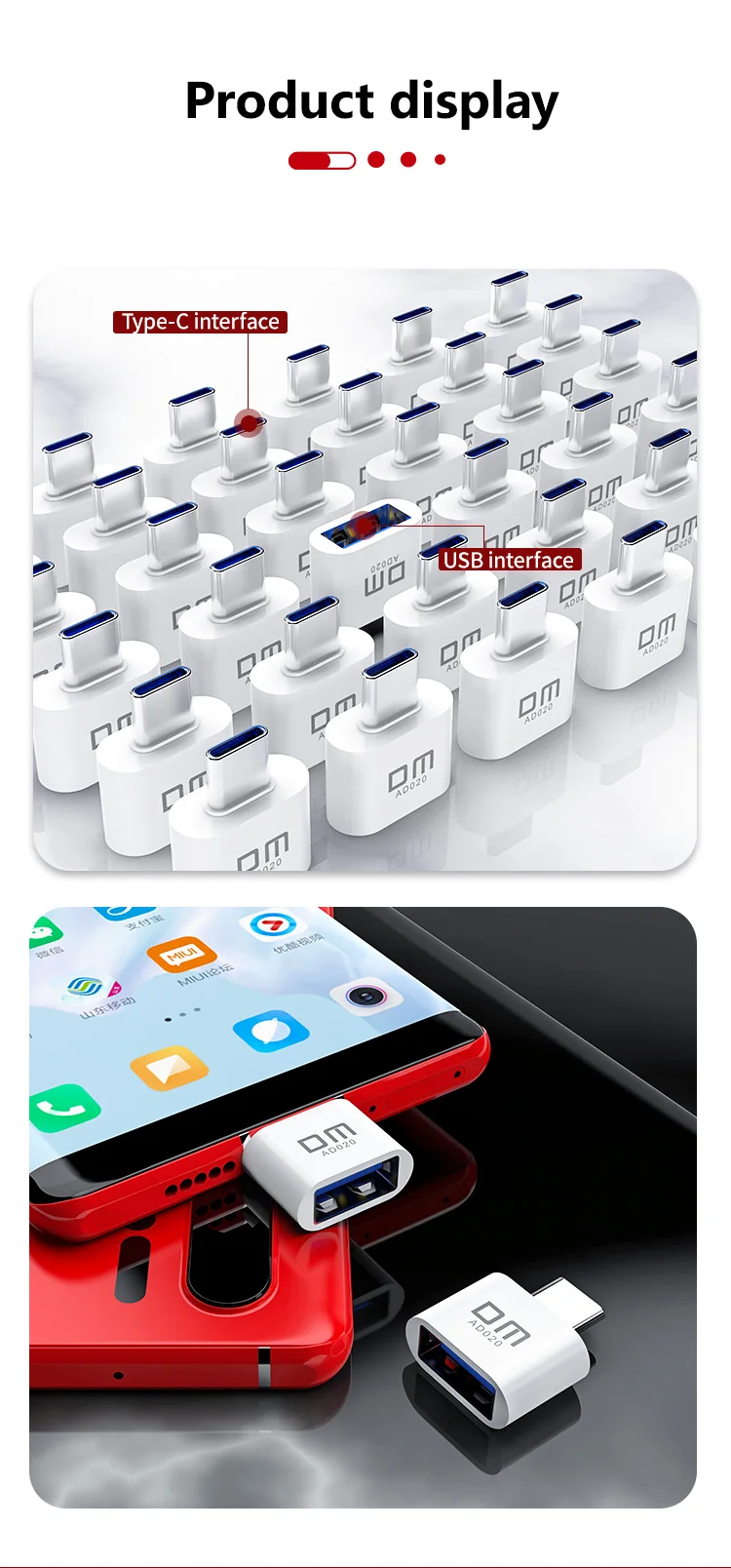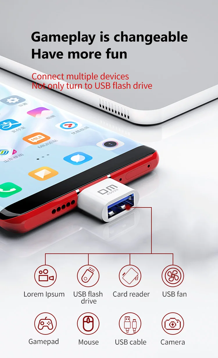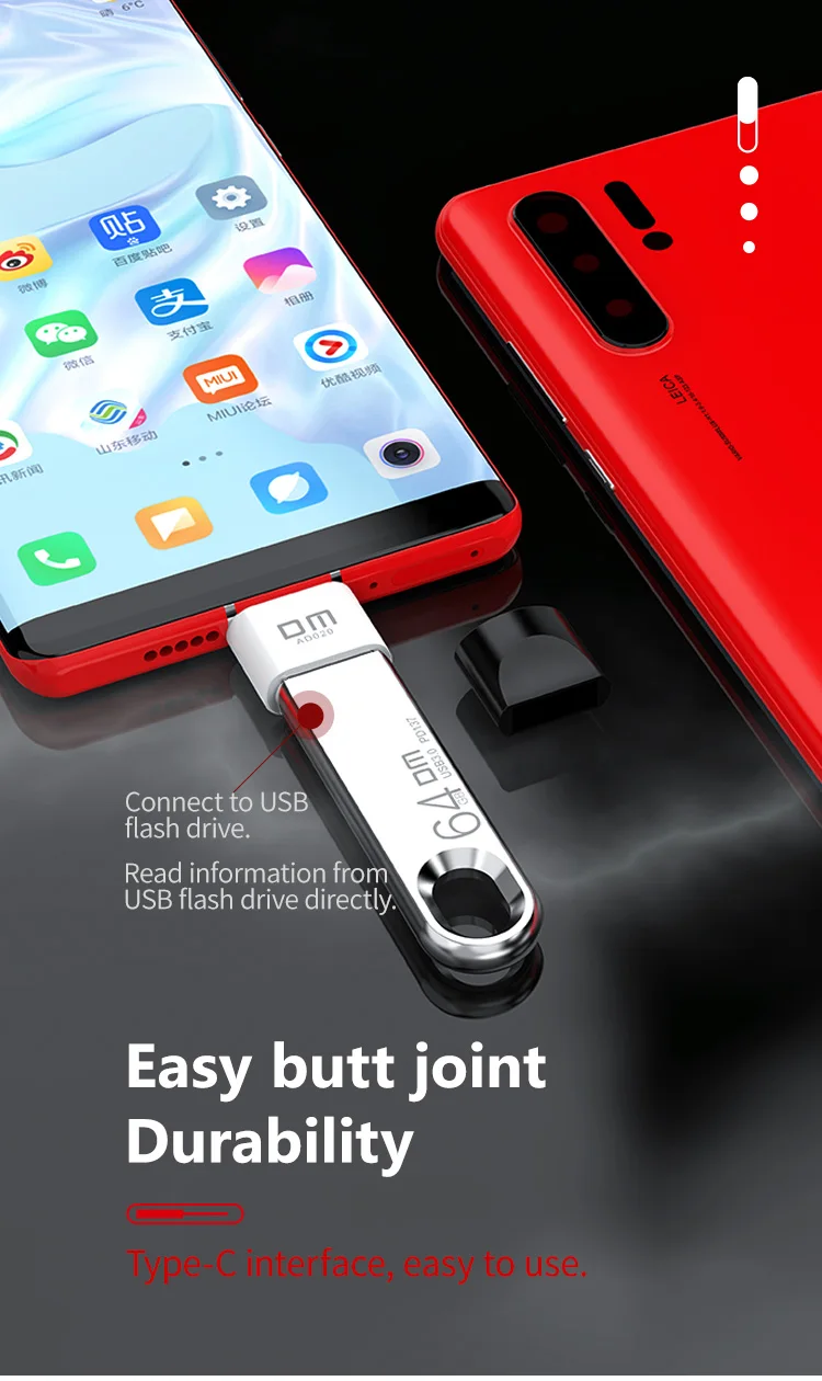 Адаптер USB C, переходник DM OTG, превратите обычный USB в usb TYPE C, usb флеш-накопитель AD020