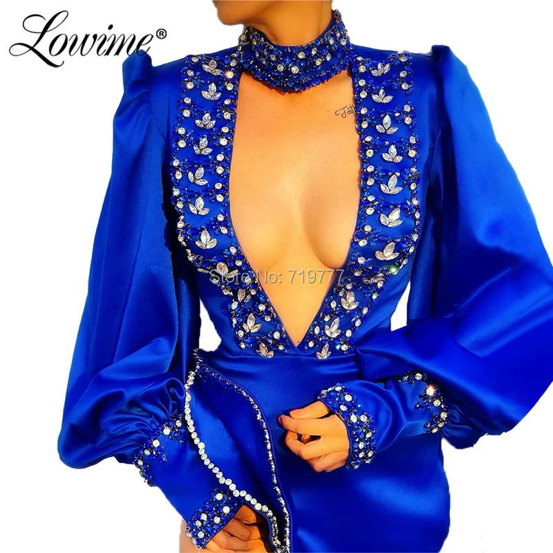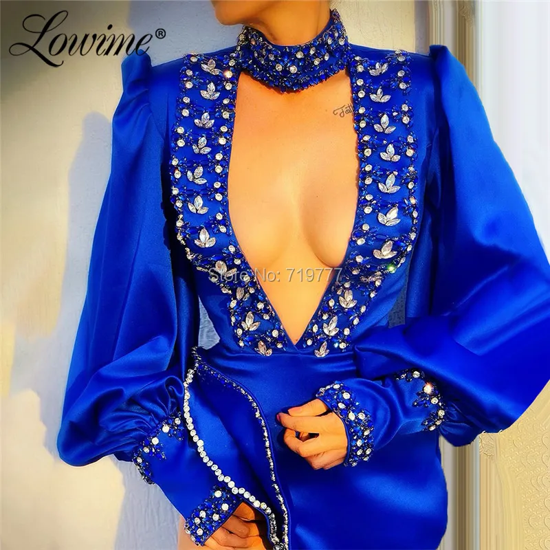 Дубай с длинными рукавами ярко-синие вечерние платья на заказ 2020 глубокий v-образный вырез бисер Кристаллы Русалка Вечерние платья для свадьбы Халат