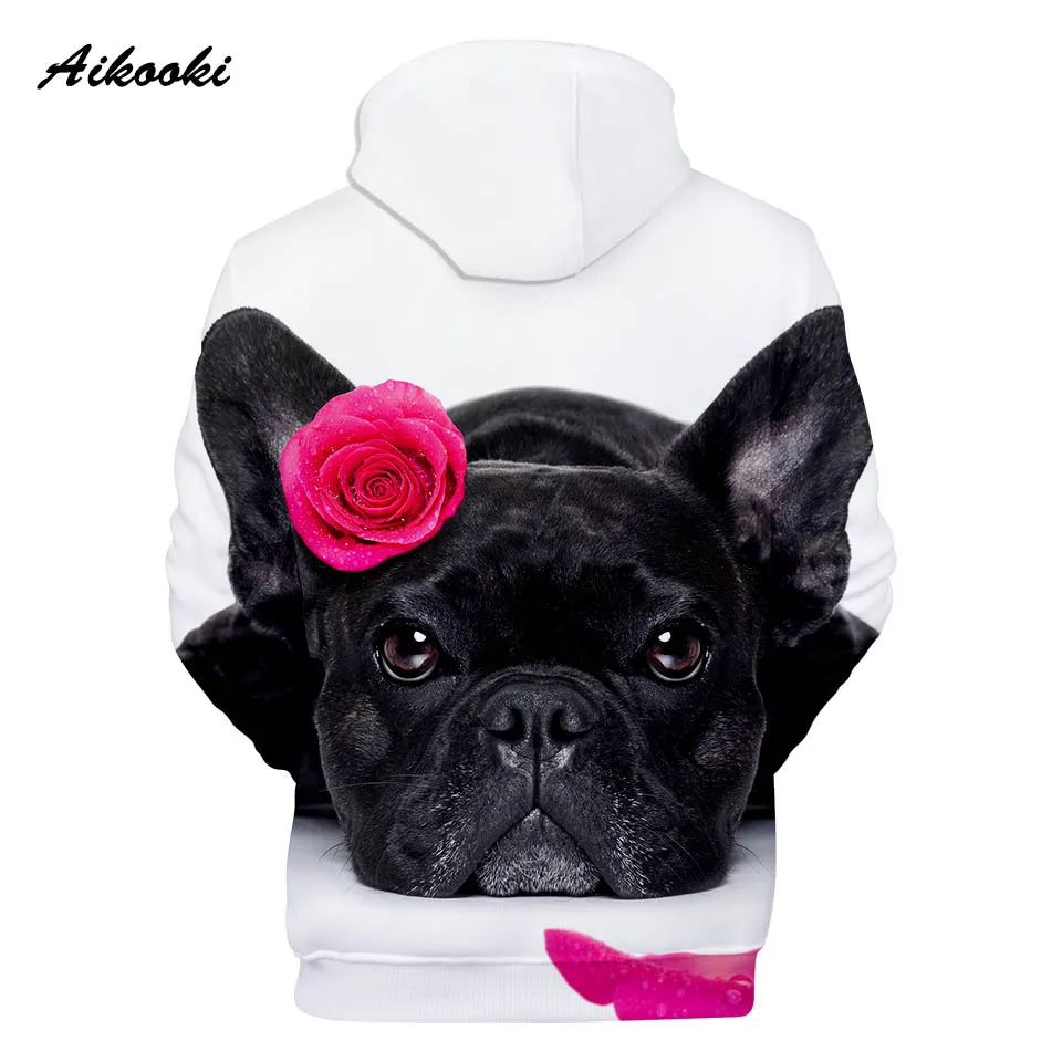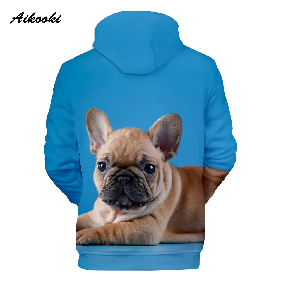 Французский толстовки "Бульдог" мужские модные повседневные осенние худи 3D полный с рисунком в виде милого щенка Детские футболки с фирменным дизайномОбувь для девочек в стиле хип-хоп, пальто