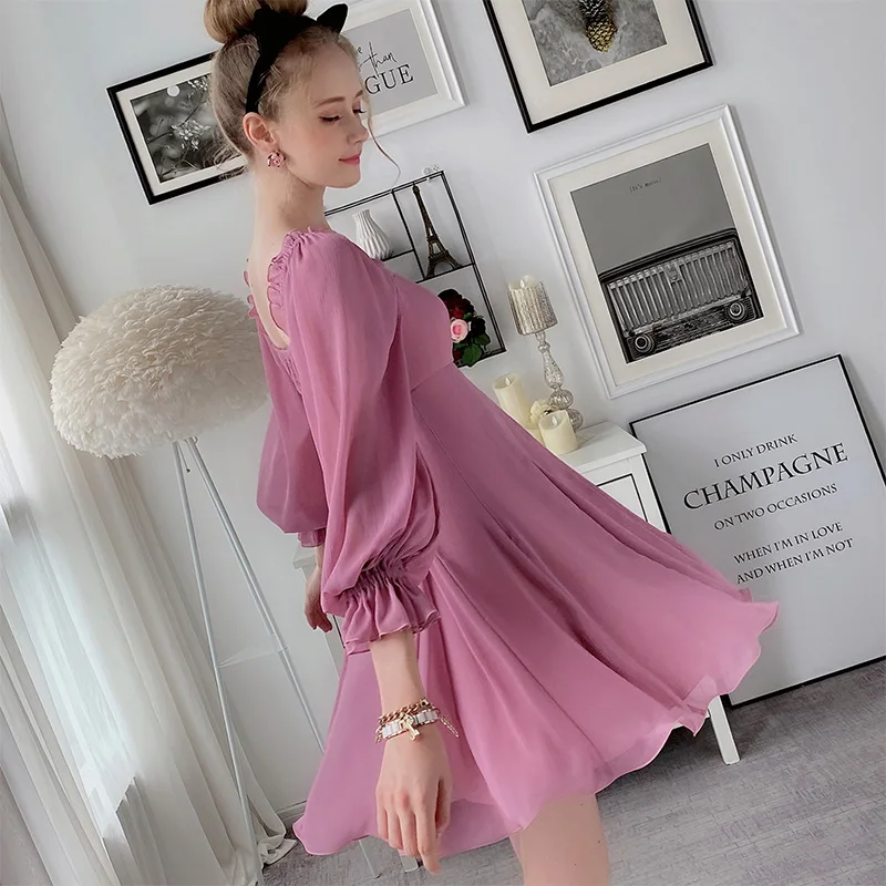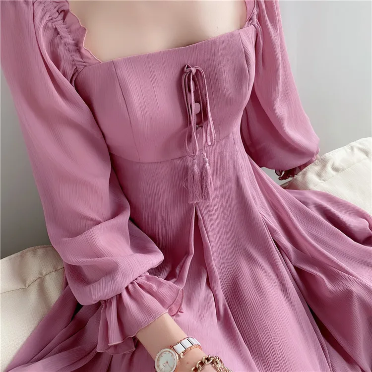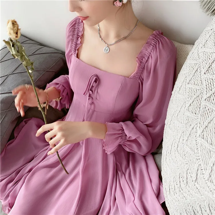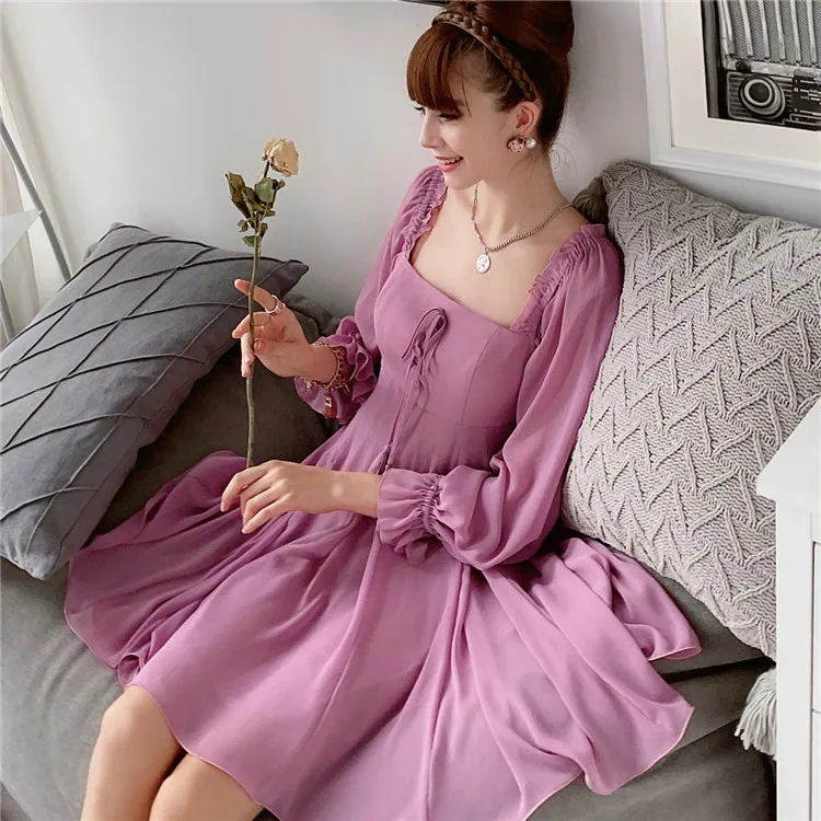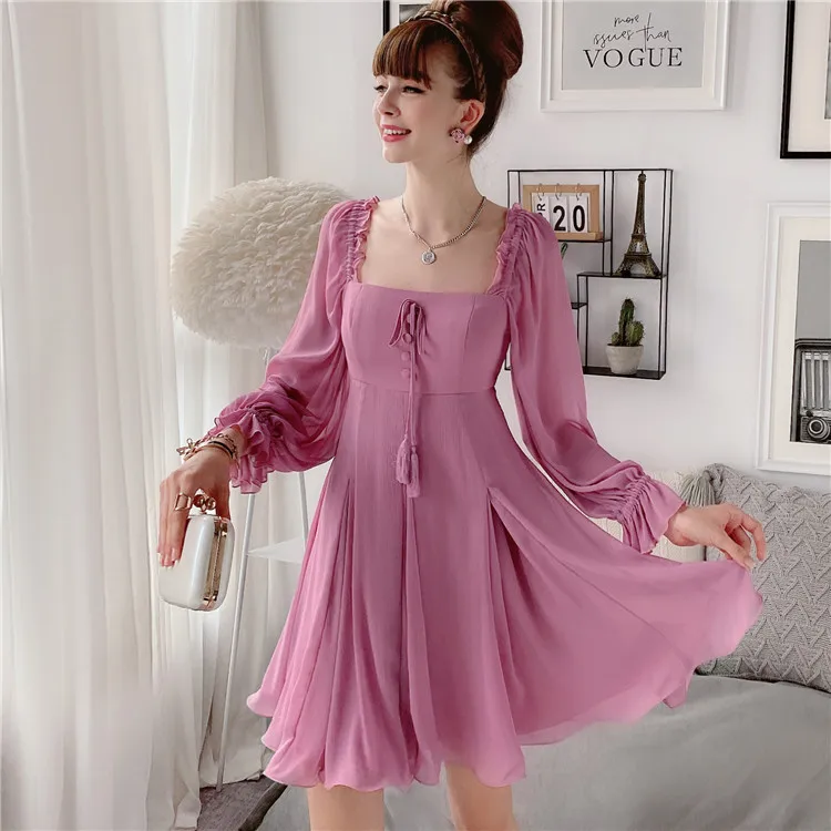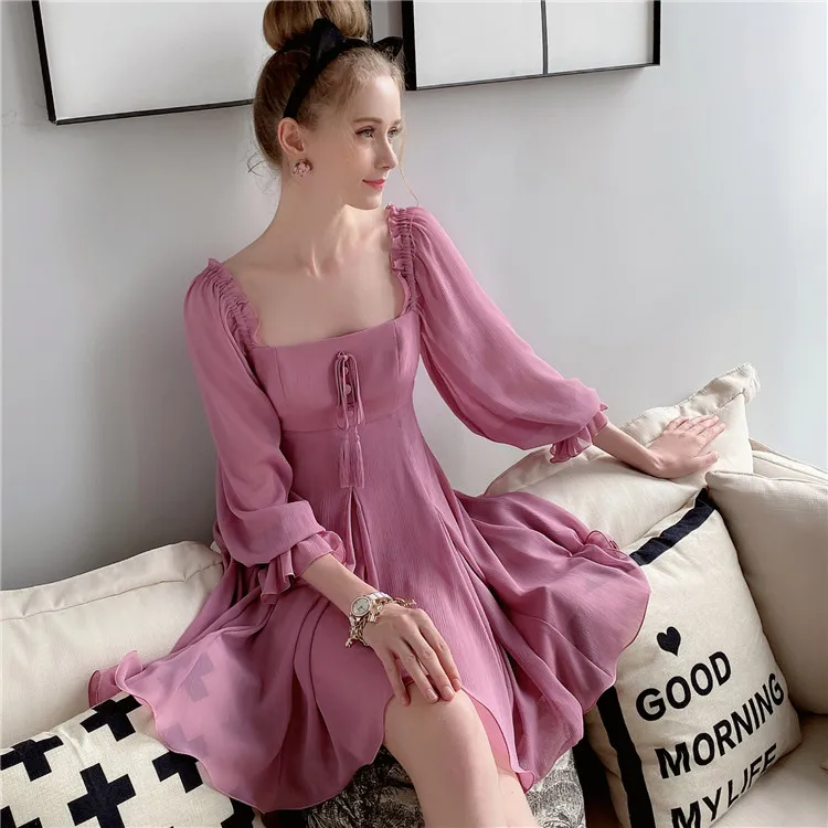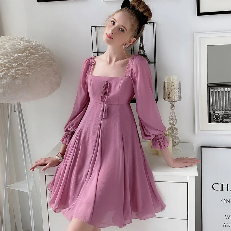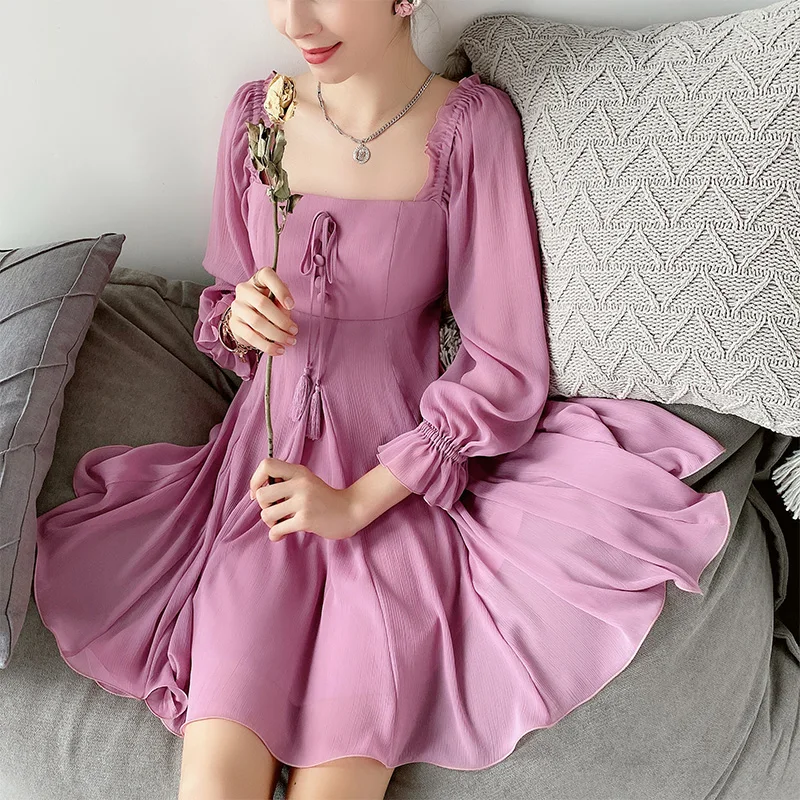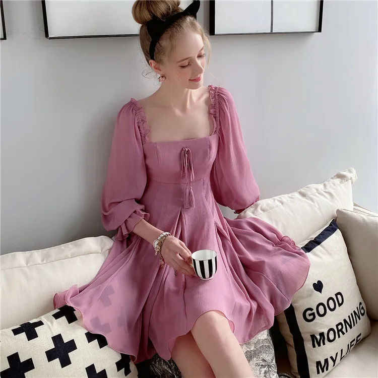 Платье Dabuwawa женское короткое с квадратным вырезом, однотонное винтажное приталенное вечерние нее, с бантом, с рукавами-фонариками, DO1ADR048