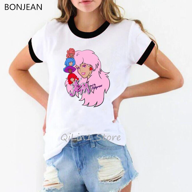 Футболка женская одежда 2021 забавная розовая футболка Jem и гологр...