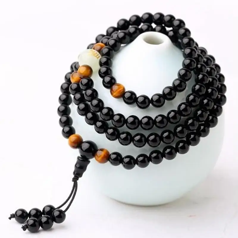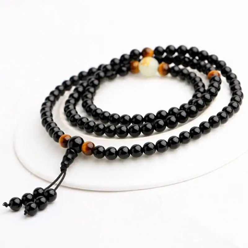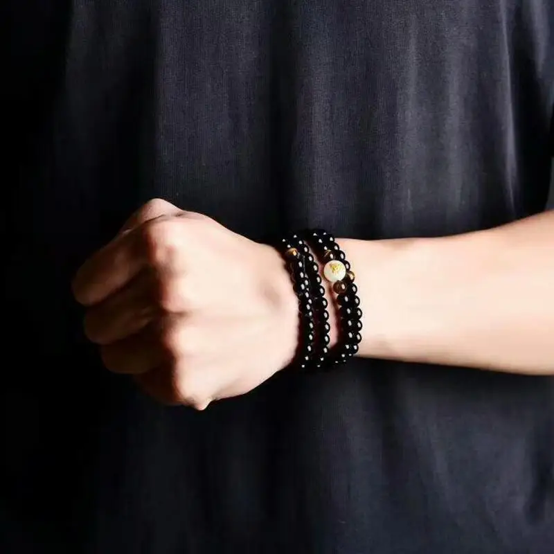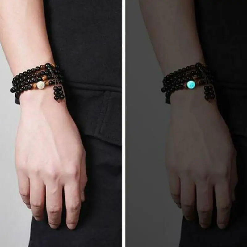 108 бусины, имитация обсидиана, бусины из сандалового дерева с золотым Драконом, буддийский женский Деревянный браслет Будды, мужской светящийся браслет для молитвы