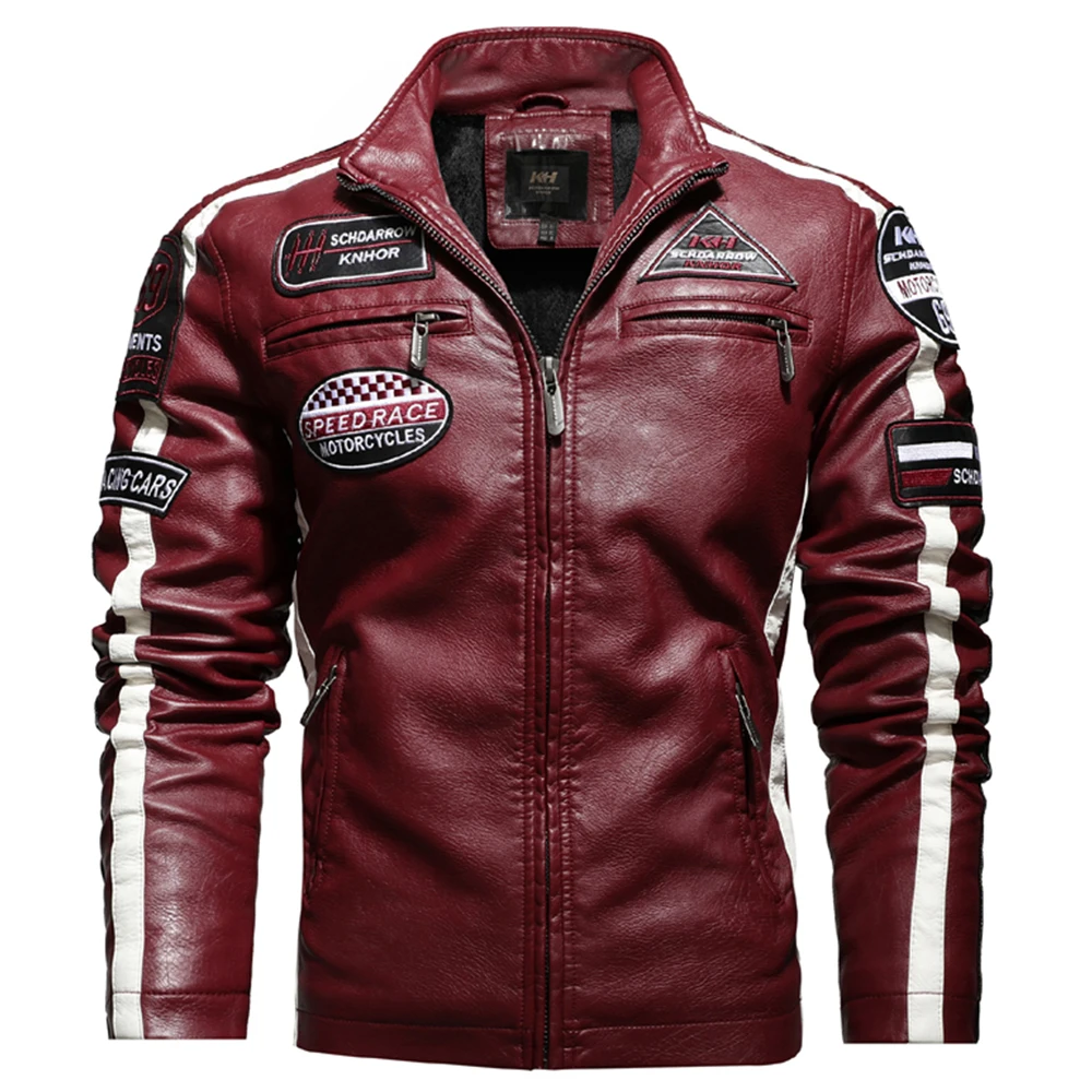 Мужская мотоциклетная куртка с вышивкой логотипа, куртка-бомбер, облегающее пальто, байкерское пальто, модное пальто на молнии, Мужская зимняя кожаная куртка