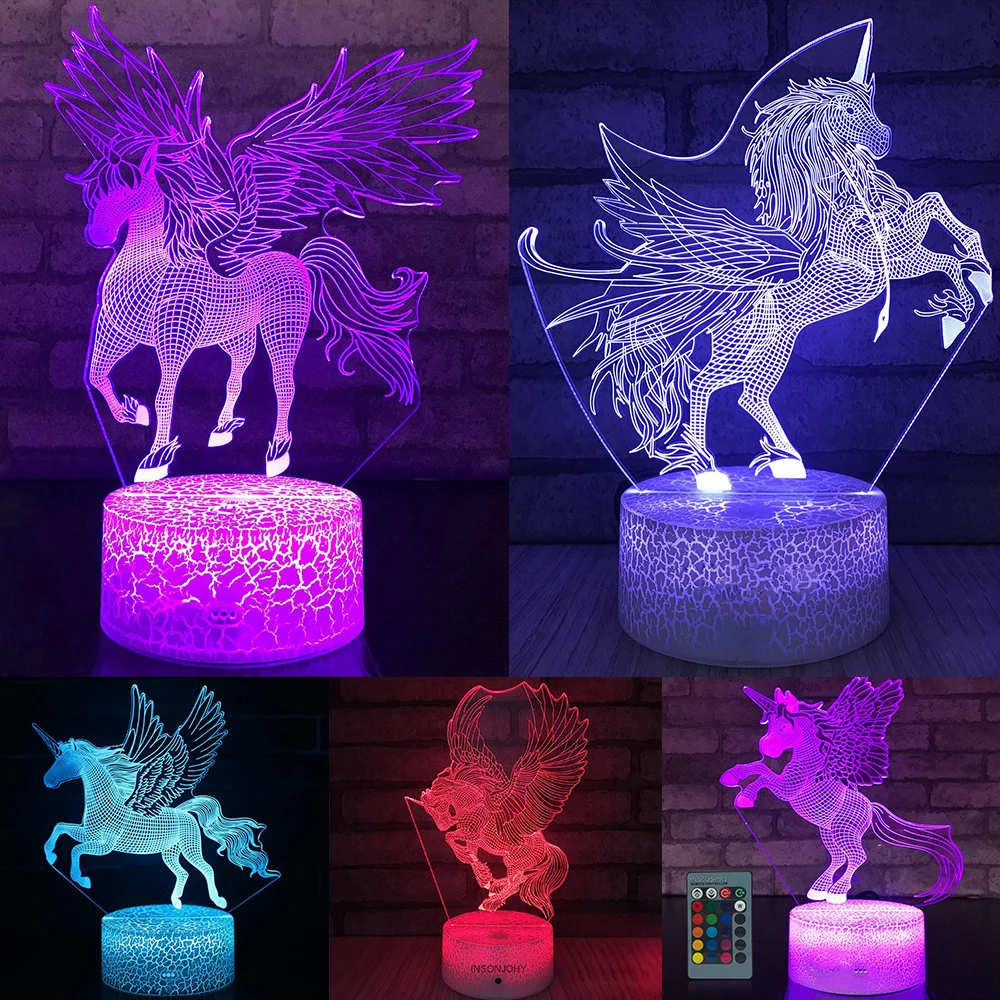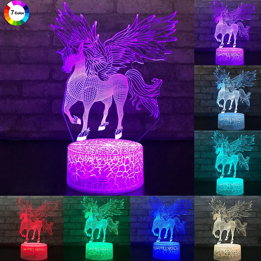 Светильник Единорог светодиодный ночник Pegasus 3D, носветильник св...