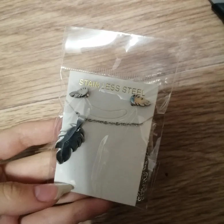 Они красивы, как серьги, так и ожерелье, как на фото. Я купил их в серебре, и так как они сделаны из нержавеющей стали, они не становятся уродливыми. Он не такой большой, как кажется, у него идеальный размер!