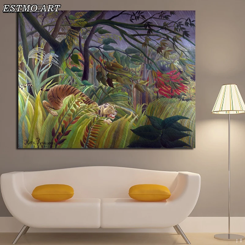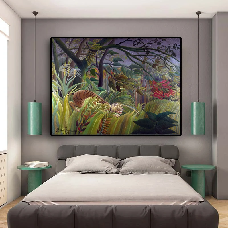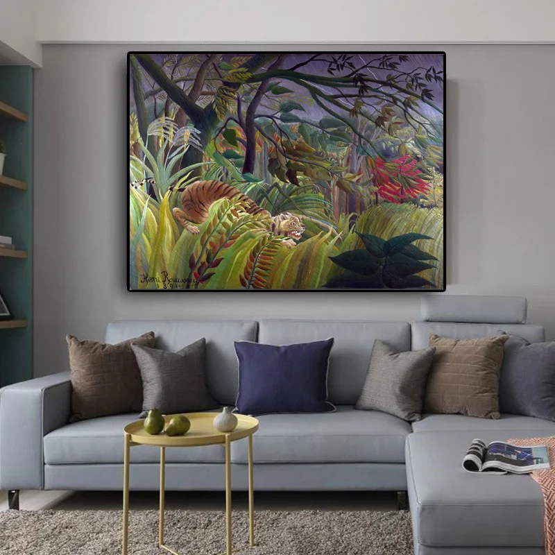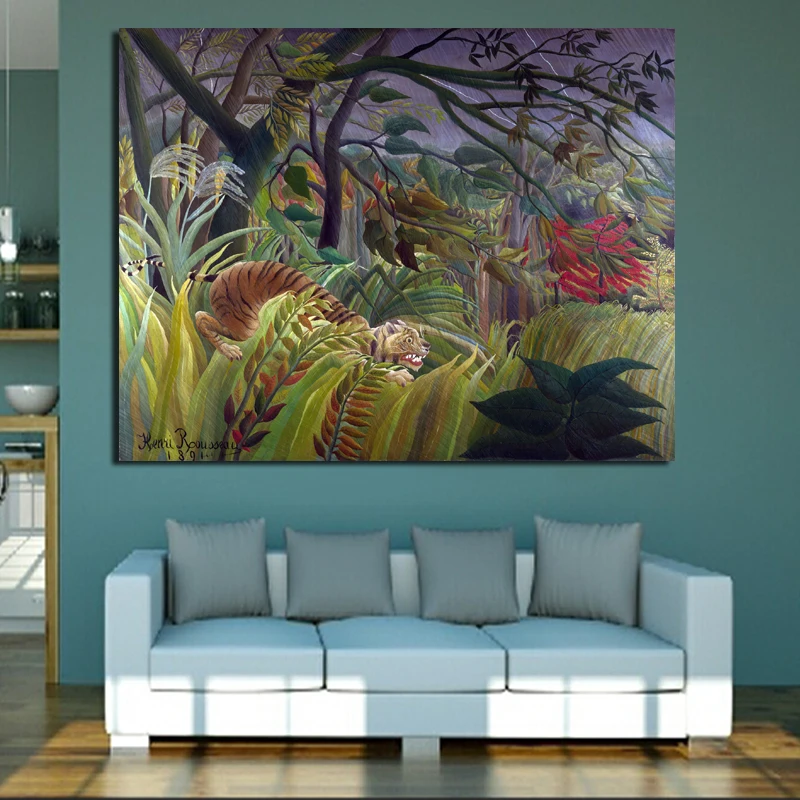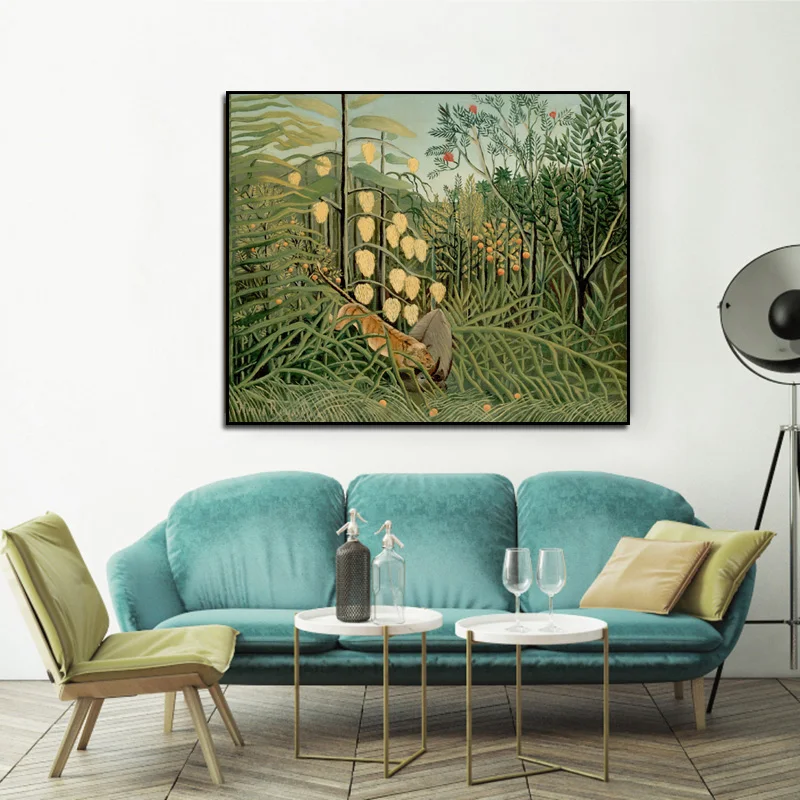 Холст настенный художественный постер Тигр в джунглях Анри Руссо абстрактный природный пейзаж Классический Холст постер для домашнего декора