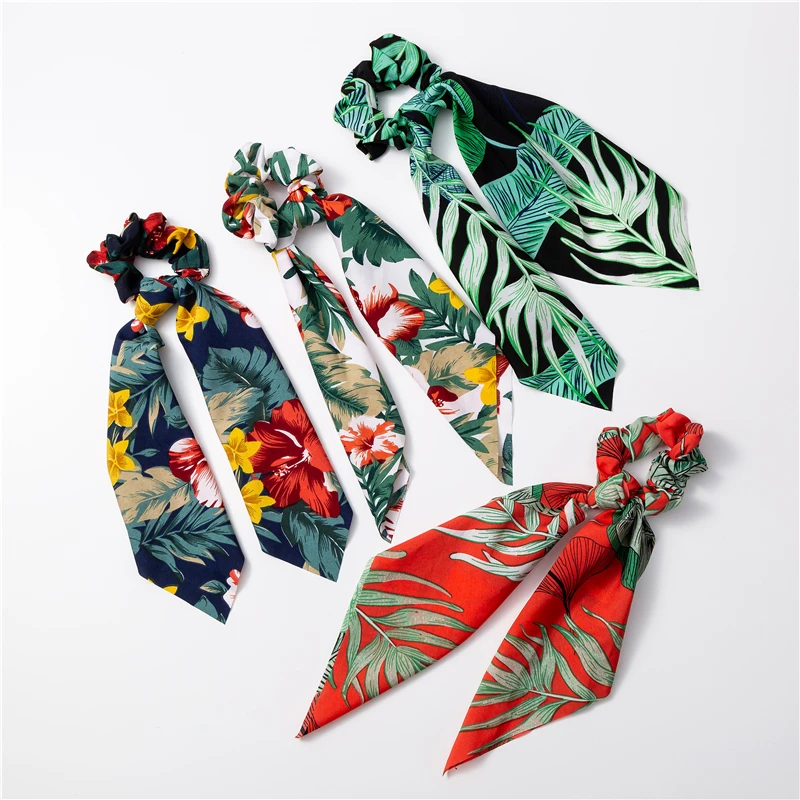 Резинка для волос женская с принтом, эластичная резинка для волос с бантом для девочек, аксессуары для волос