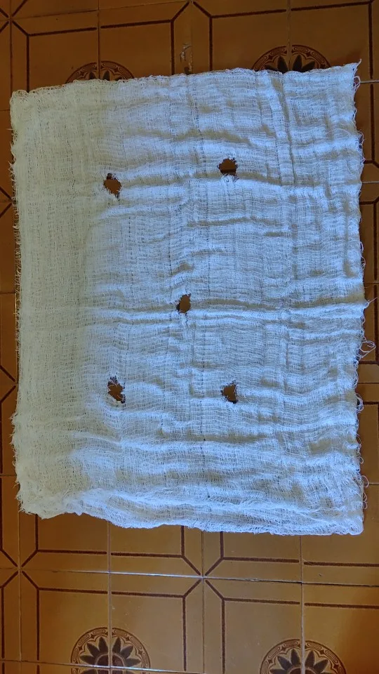 Выглядит хорошо! Это не точно так, как на картинке, так как в нем есть только пять небольших отверстий вместо нескольких неправильных (но это легко изменить). Сетка очень тонкая и тонкая. Тщательно разворачивайте ткань до общей длины.