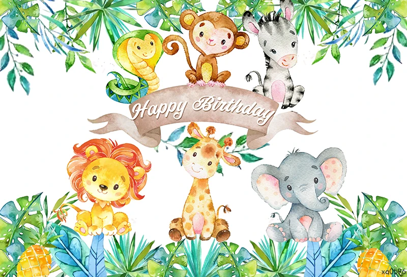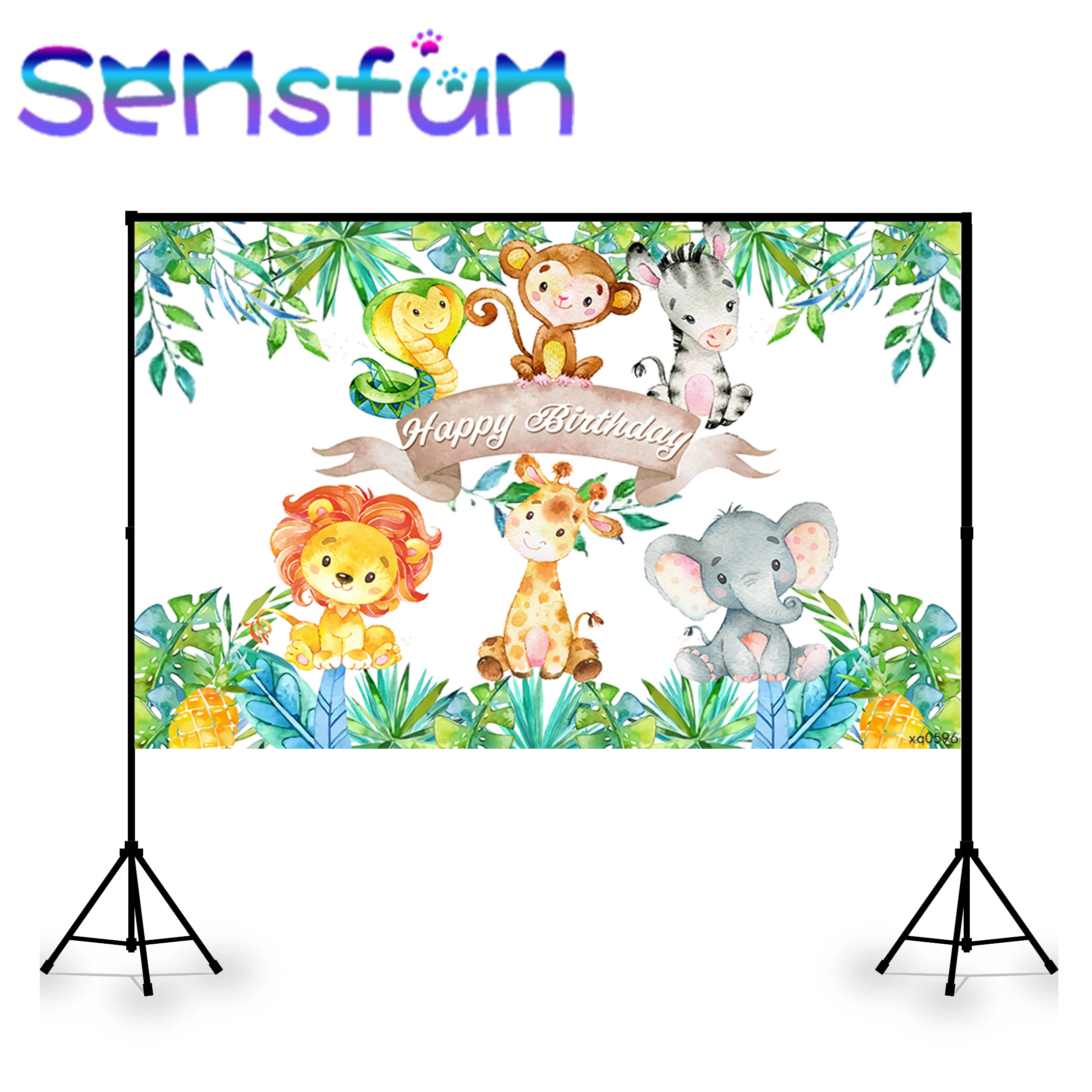 Фотофон Xq0596 с изображением джунглей для вечеринки с изображением животных короля льва слона на день рождения фон для фотостудии реквизит
