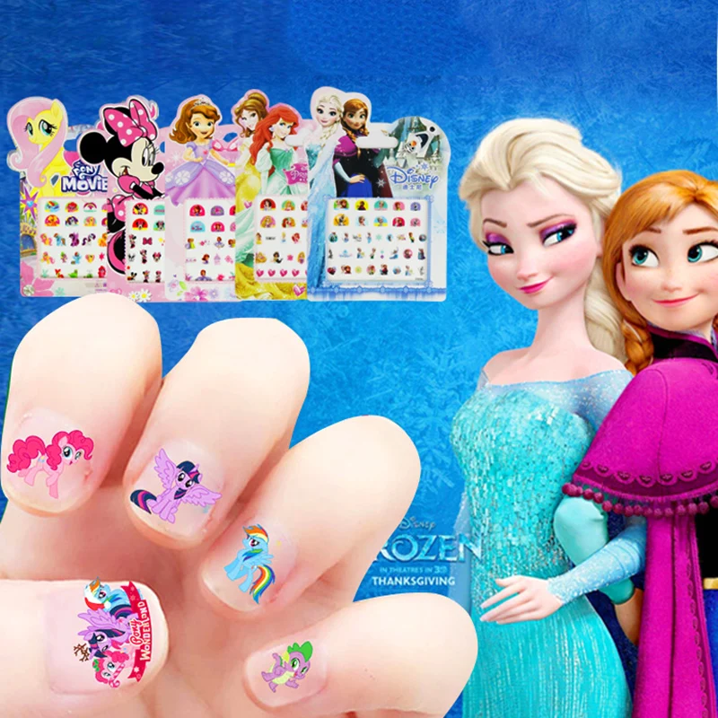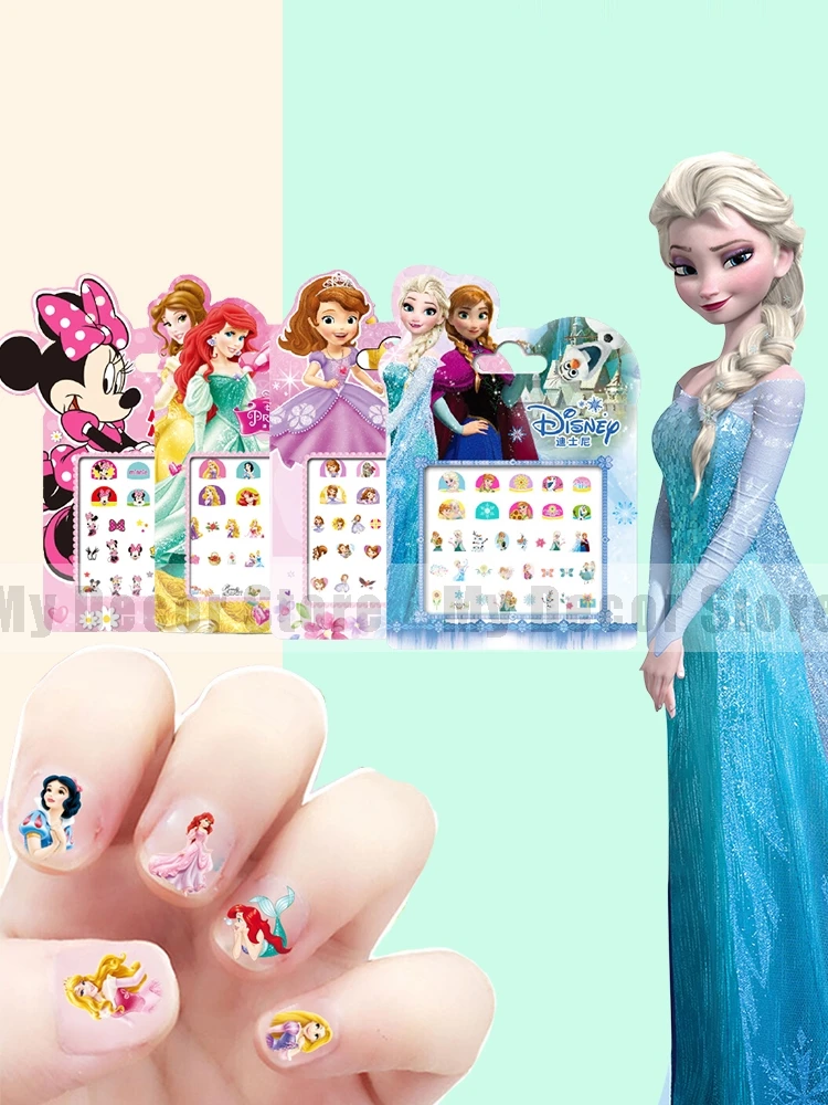 Макияжная игрушка для девочек Холодное сердце 2, Эльза и Анна, наклейки для дизайна ногтей, Дисней, Белоснежка, Принцесса София, пони, Минни, детские наклейки, Декор, подарок для девочек