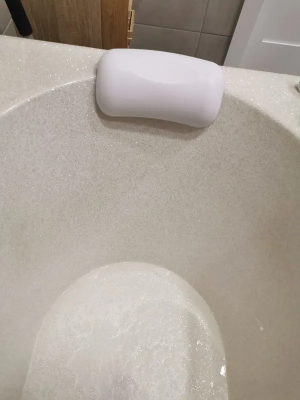 This bath “pillow” is made from a hard material. Super uncomfortable. Big disappointment.