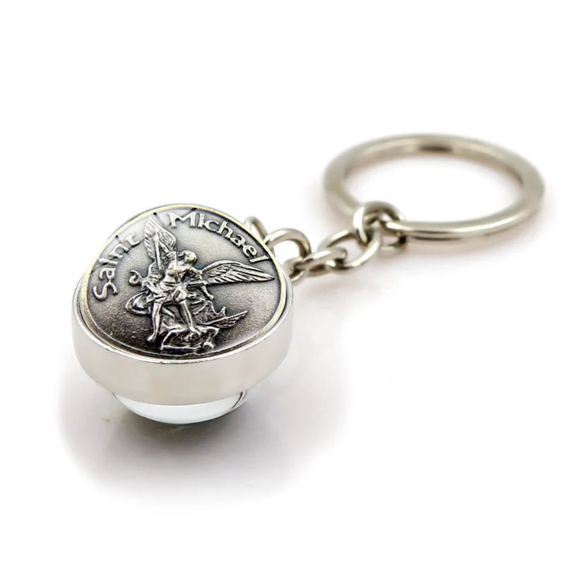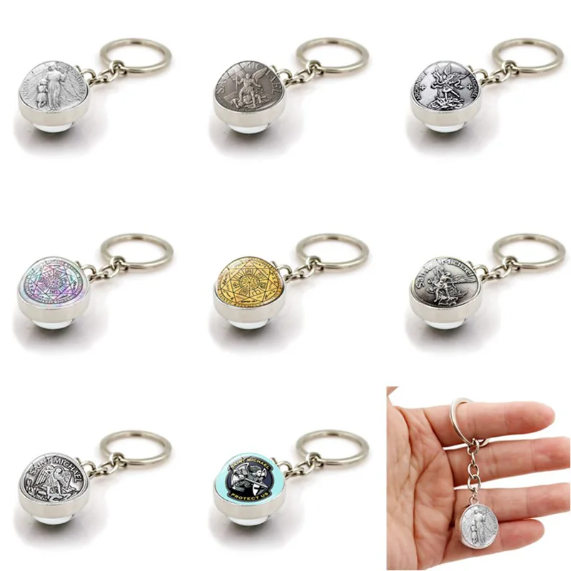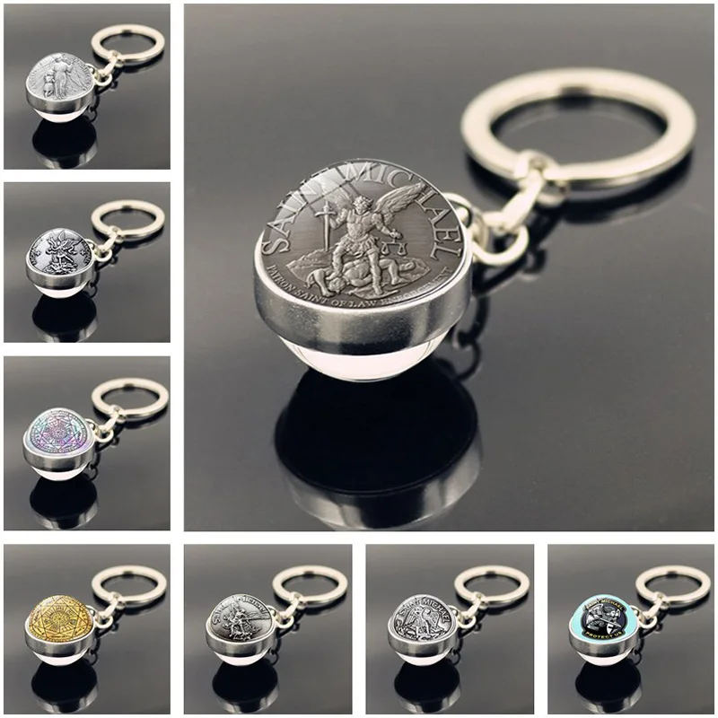 Брелок для ключей Archangel St.Michael, крылья ангела, защита меня, Святого щит, Иисус, двухсторонний стеклянный шар, брелок для ключей, подарок для талисмана