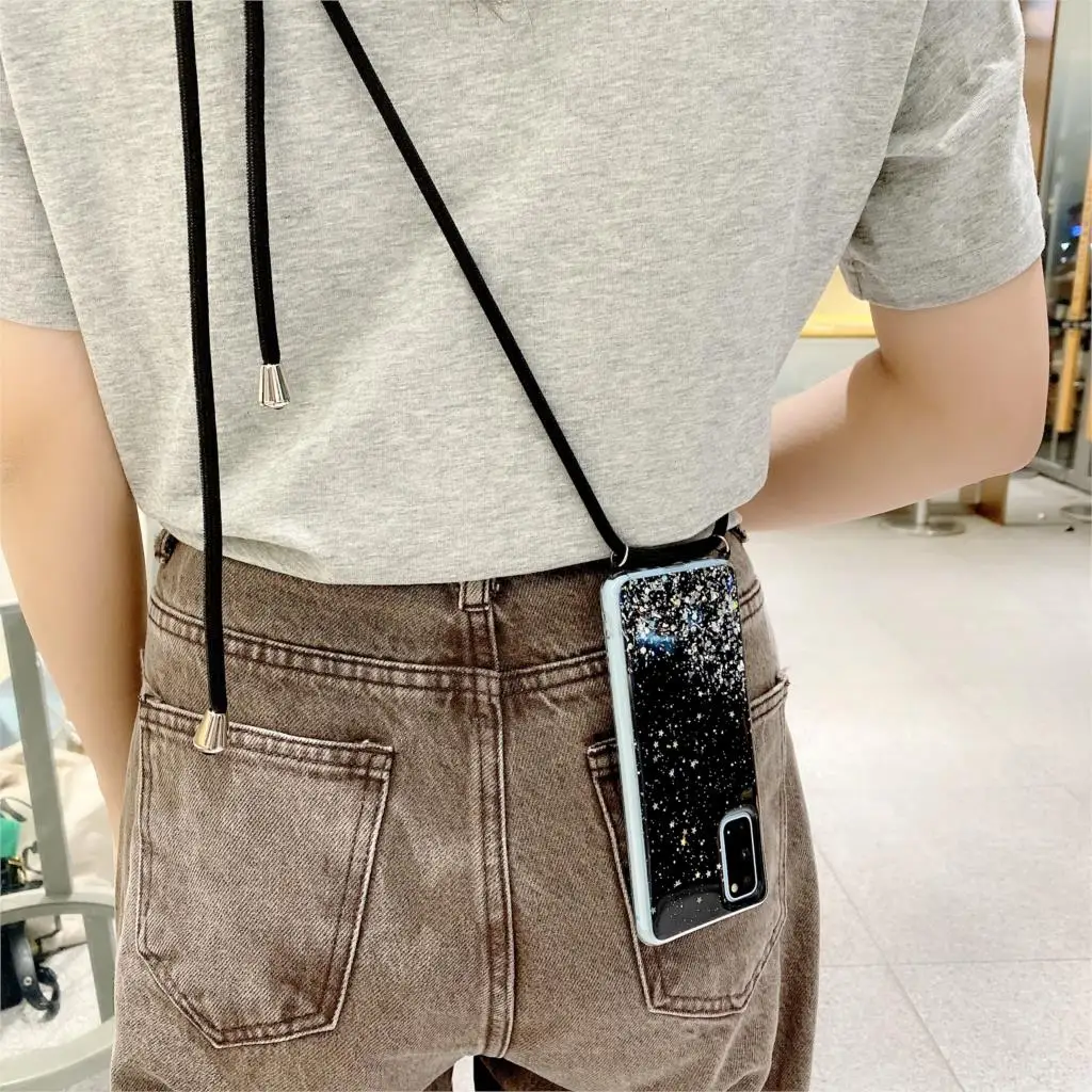 Чехол с ремешком на шею для Samsung Galaxy S8, S9, S10 Plus, Note 10 Lite, A51, A71, 5G, A50, A70, A11, S20, ультра блестящий прозрачный мягкий чехол