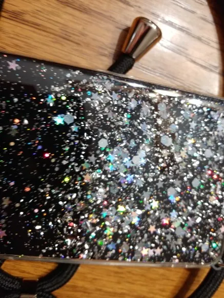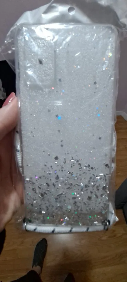 чехол красивый. блесточки в 3д эффекте. не плотно сидит в правом нижнем углу, буду немного беспокоится.