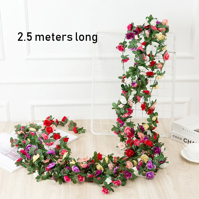 Искусственные розы 250 см в длину, цветы, лоза, Осенний тростник, Декор, шелковая искусственная ротанговая Гирлянда для украшения дома, отеля, свадьбы