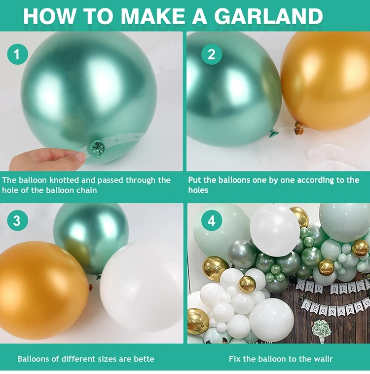 Зеленая Серебряная гирлянда с воздушными шарами, украшение в виде а...