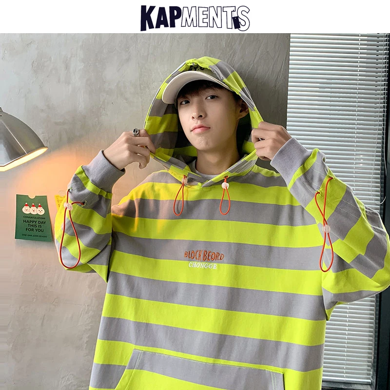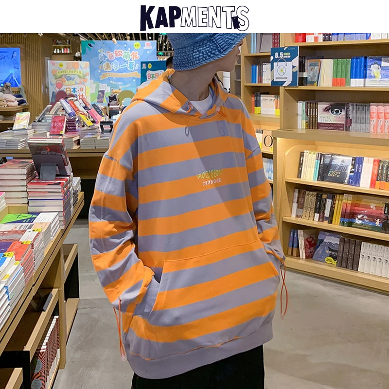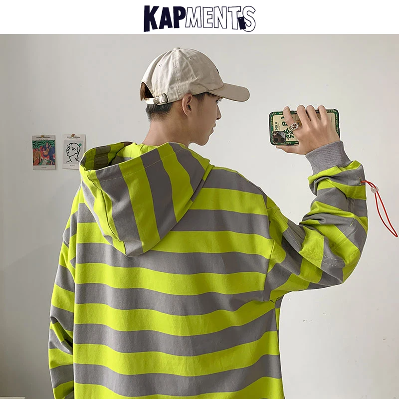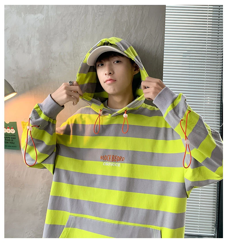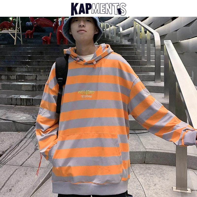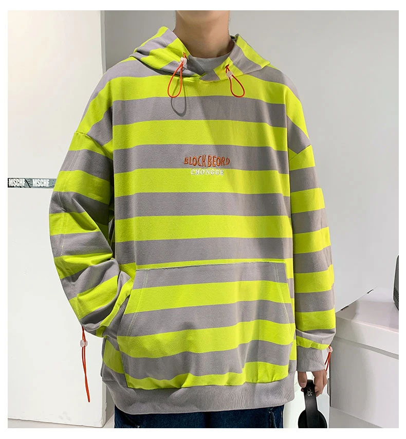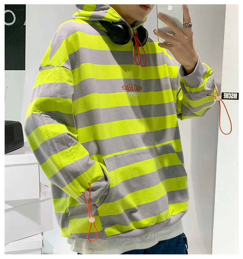 Мужская толстовка в полоску с капюшоном, в стиле хип-хоп