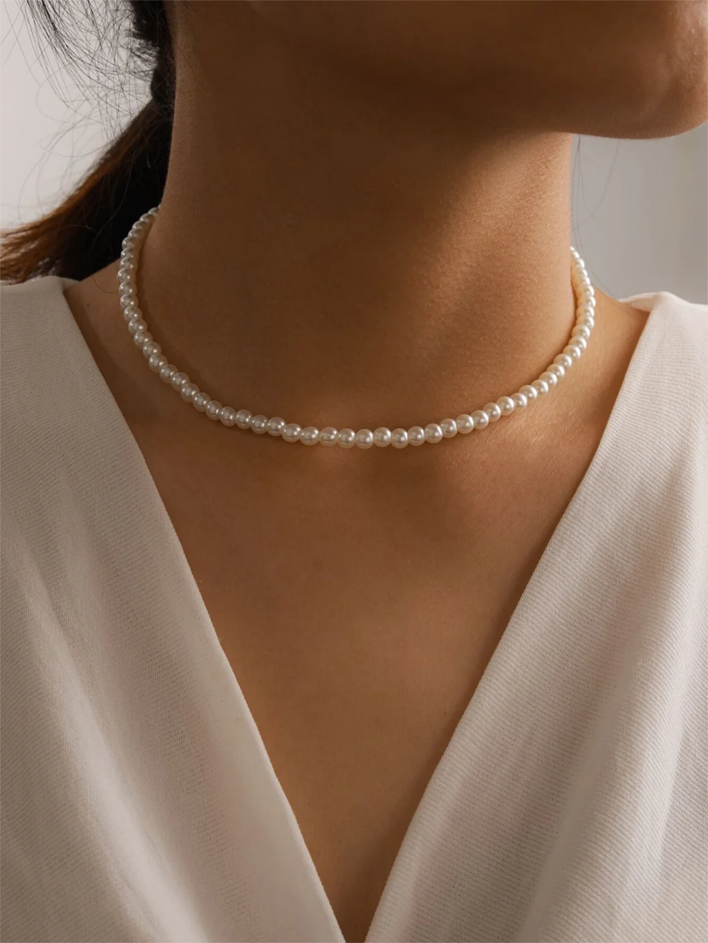 Свежий стиль маленький шар ожерелья с искусственным жемчугом для женщин, 5 размеров, женские ключицы ожерелья цепи, День Святого Валентина, ювелирные изделия, подарки