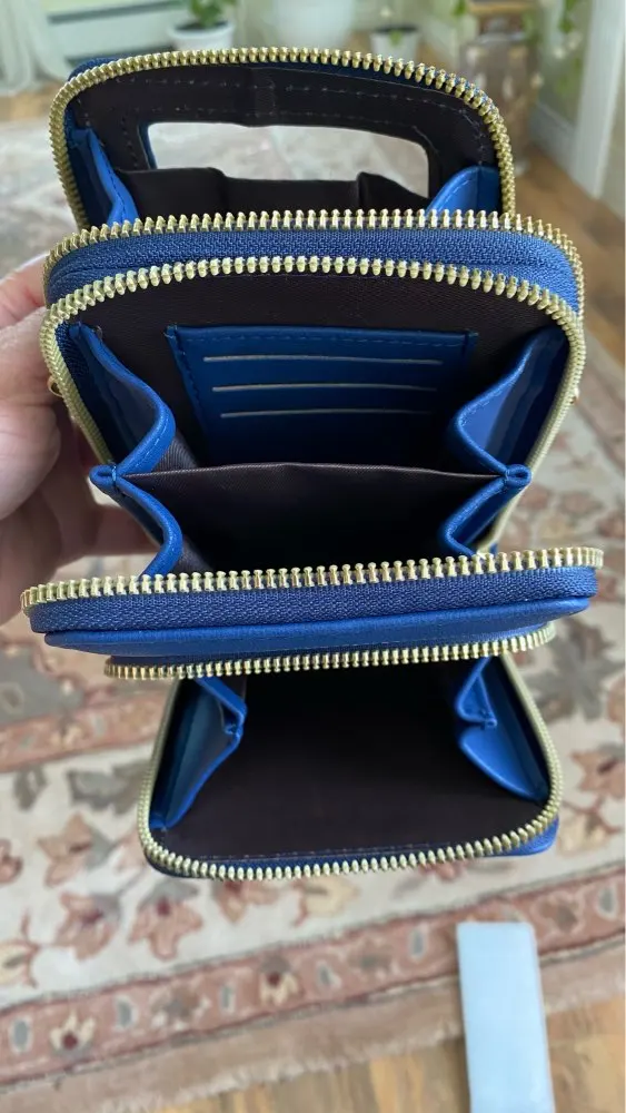 Пришел намного быстрее, чем обычные заказы. Качество очень хорошее, молнии прочные. Держатели карт являются сложными, так как карта скользит вниз в слоты, так что немного трудно выйти. Прикосновение на экране телефона не так быстро реагирует, как я надевал, так и найти его хорошо проверить на телефоне, но на самом деле не делать много текстовых сообщений. Он держит все товары, которые мне нужны на ежедневной основе.