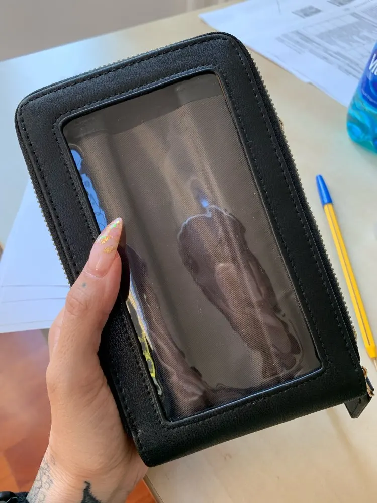 Очень красиво и практично, идеально подходит для использования мобильного телефона, не вынимая его из сумки. Мобильный работает правильно, используя его снаружи пластика. Очень доволен покупкой. Я рекомендую это, без сомнения.