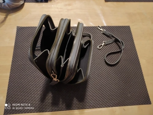 Это здорово. Он имеет много отсеков и заднюю часть для размещения мобильного телефона позволяет продолжать использовать сенсорный экран. У меня нет проблем со всем, что мне нужно, и у меня все еще есть комната. Он имеет отделения для карт и поставляется с двумя ремешками, один длинный и один короткий. Он прибыл через неделю.