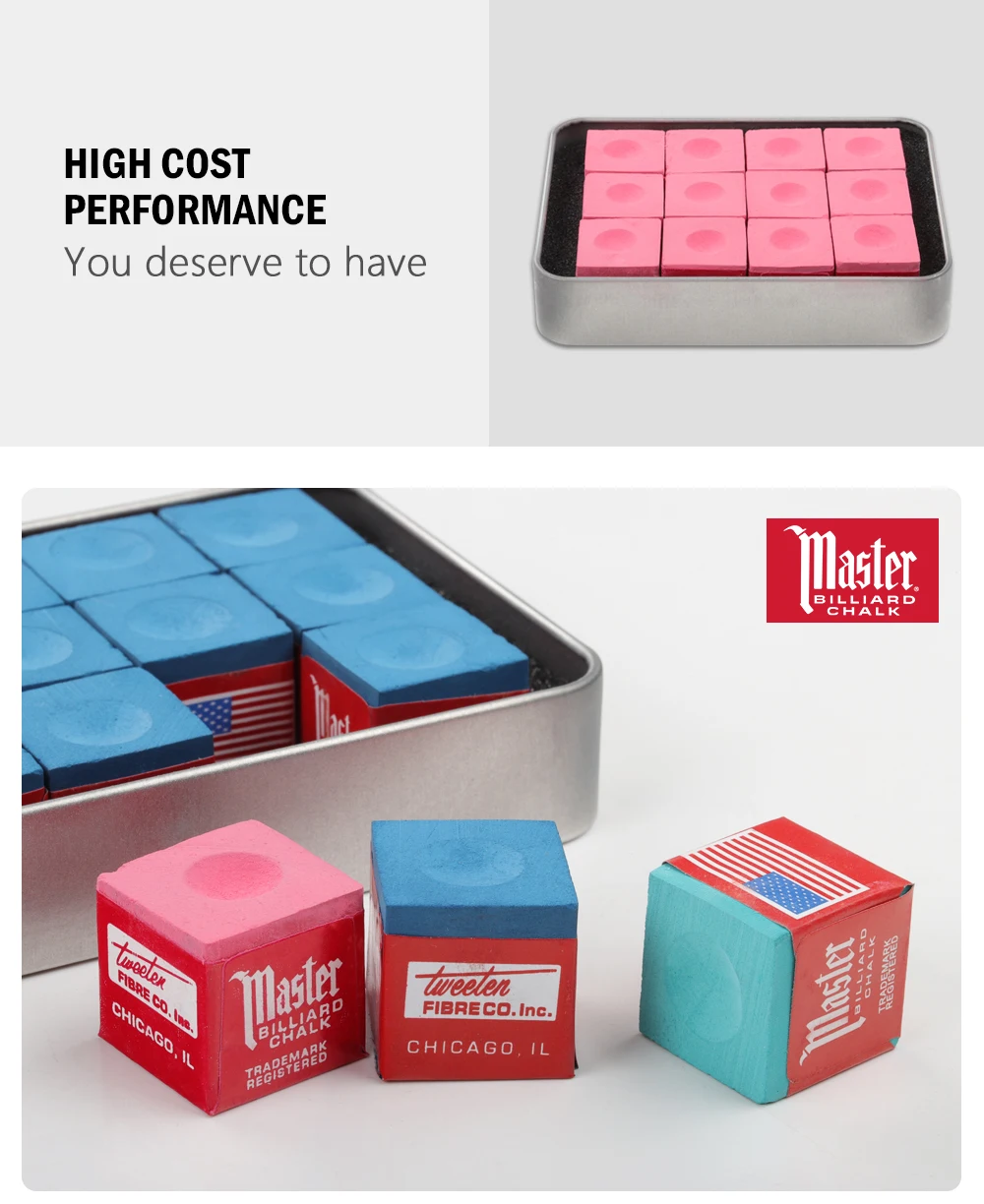 Оригинальный мастер бильярдный мел масло сухой Мел бильярдный кий 12 штук снукер черный 8 зеленый красный синий мел