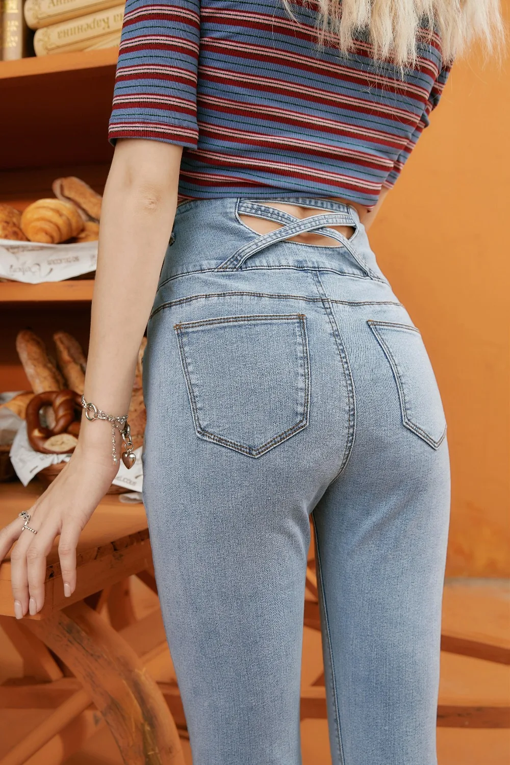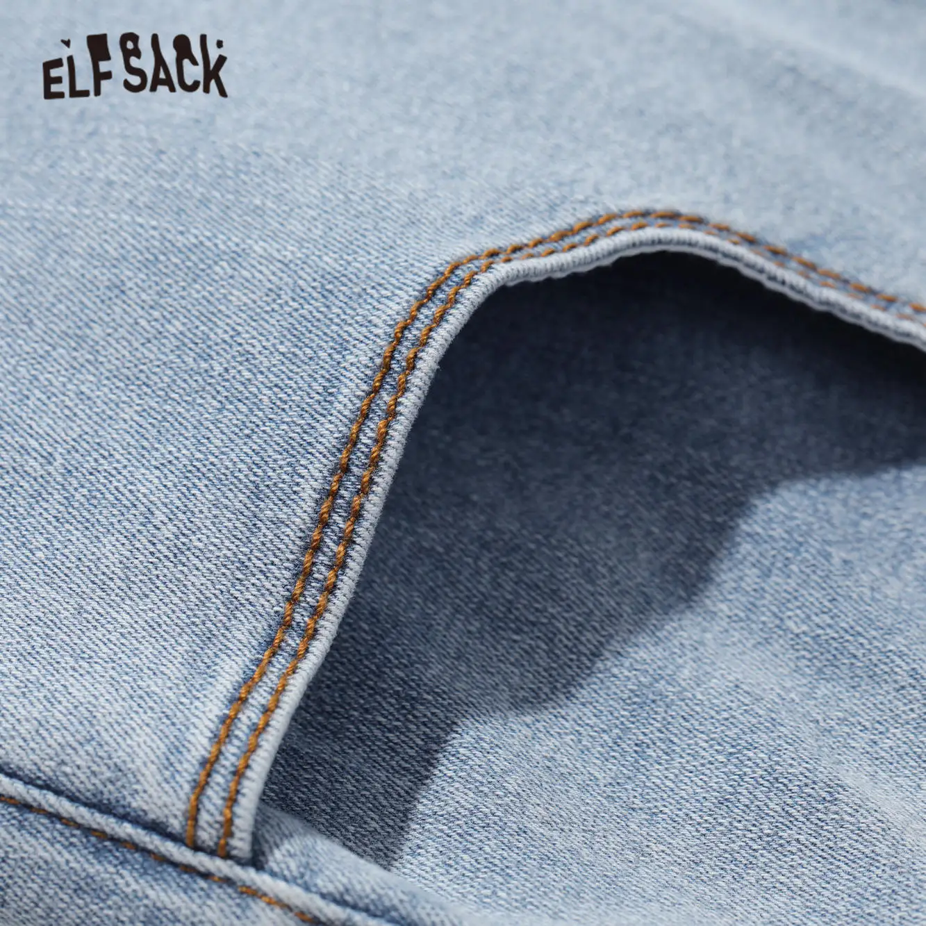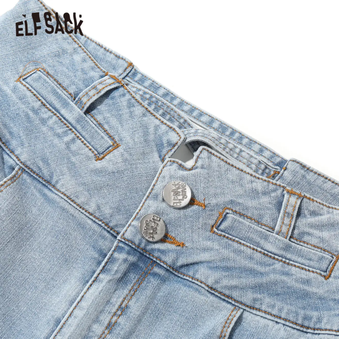 ELFSACKоднотонные потертые повседневные облегающие джинсы с высокой талией для женщин, осень 2020, женские корейские штаны для ежедневной носки
