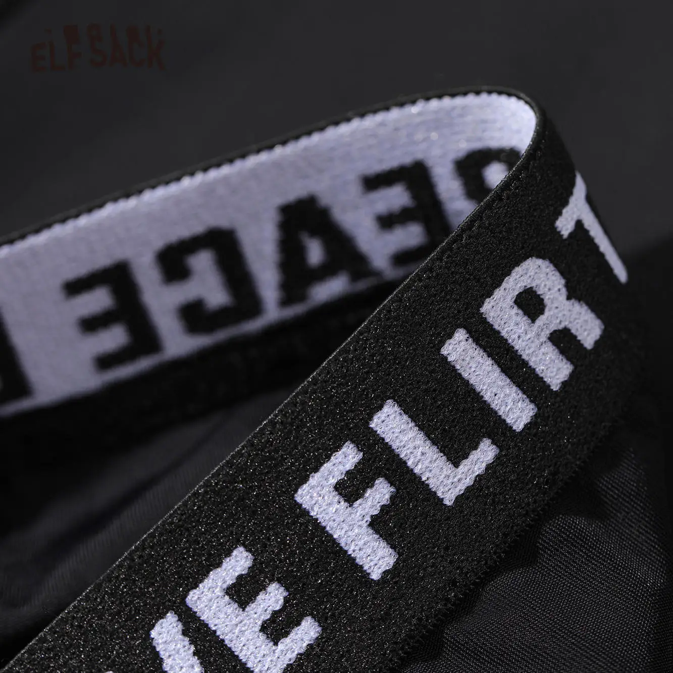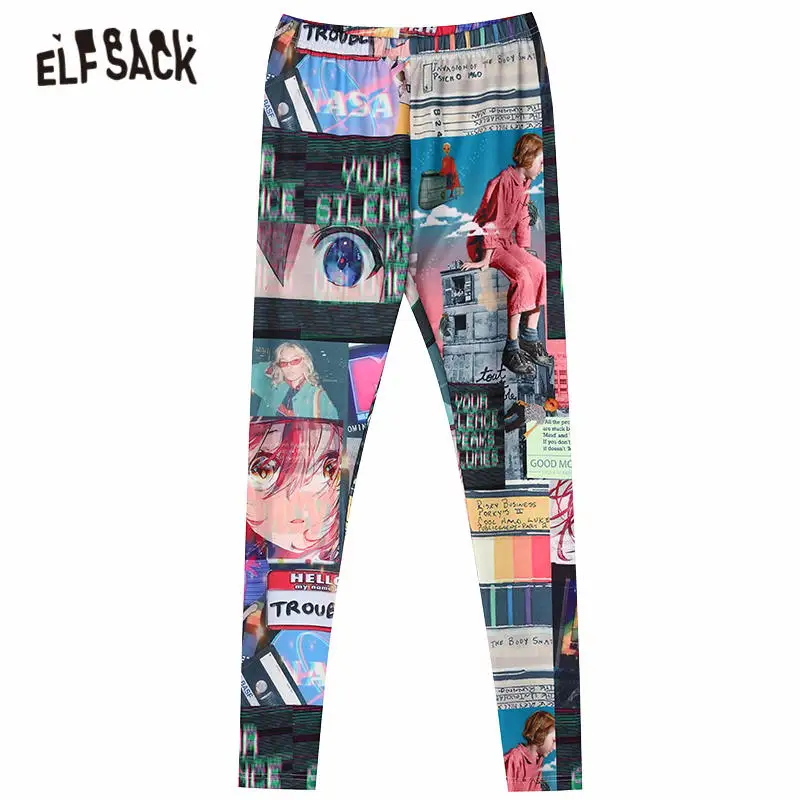 ELFSACKчерные однотонные обтягивающие брюки в полоску сбоку для женщин, осенние корейские женские брюки с графическим принтом ELF 2020, повседневные спортивные брюки-карандаш